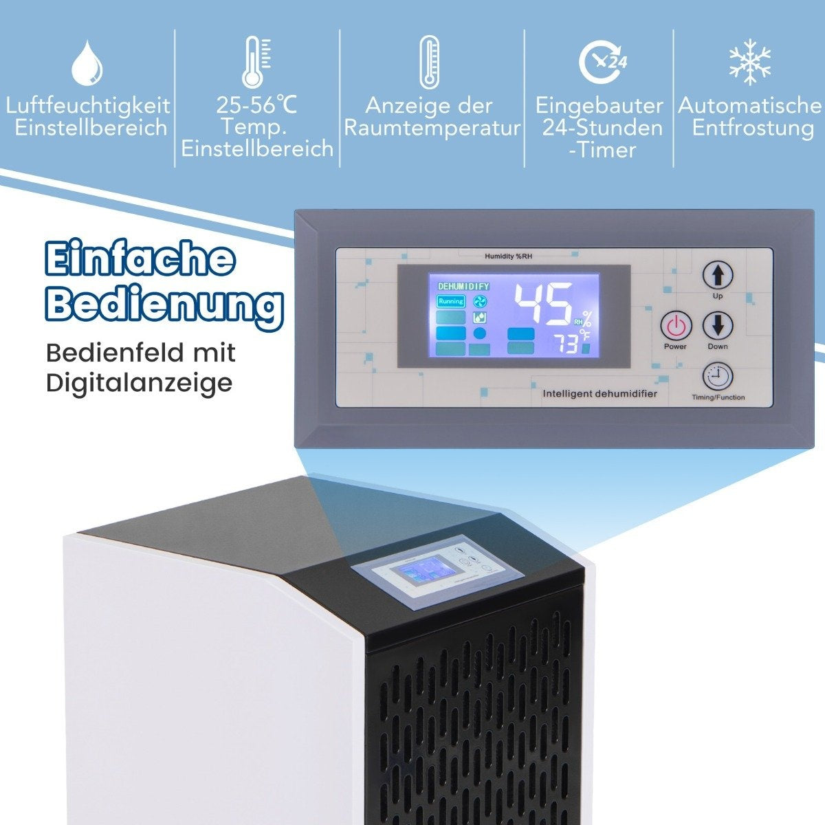 Operating and maintaining this industrial dehumidifier is a breeze, thanks to its user-friendly digital display panel. Monitor the ambient temperature and humidity levels effortlessly, and customize your settings with the adjustable humidity range from 10% to 98% and temperature range from 25°C to 56°C. The built-in 24-hour timer allows for personalized humidity control, while the automatic defrost function ensures smooth and stable operation. Plus, the removable and washable filter makes cleaning simple and convenient.