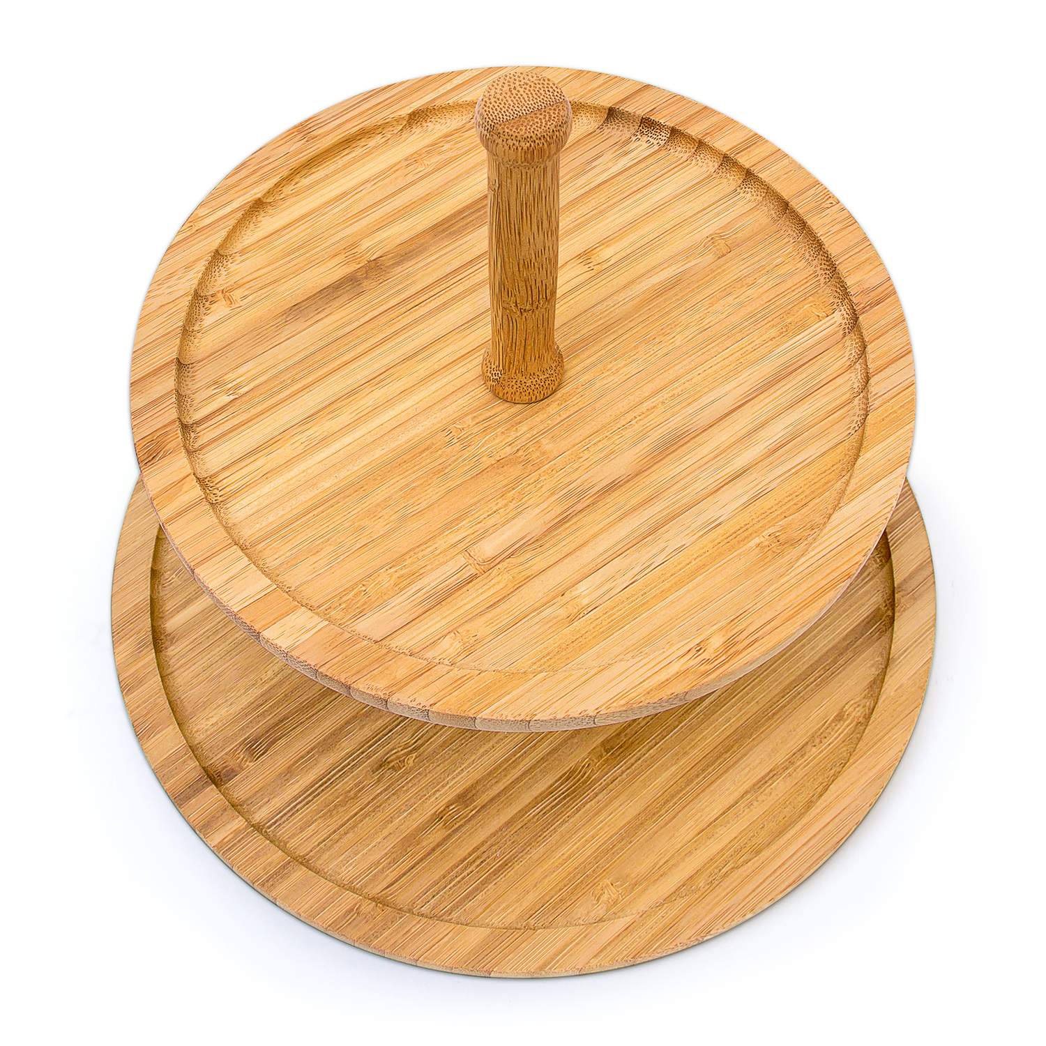 Transform your hosting experience with this decorative tiered platter. Its natural bamboo finish and elegant design make it a must-have for any kitchen. Grab yours today and impress your guests.