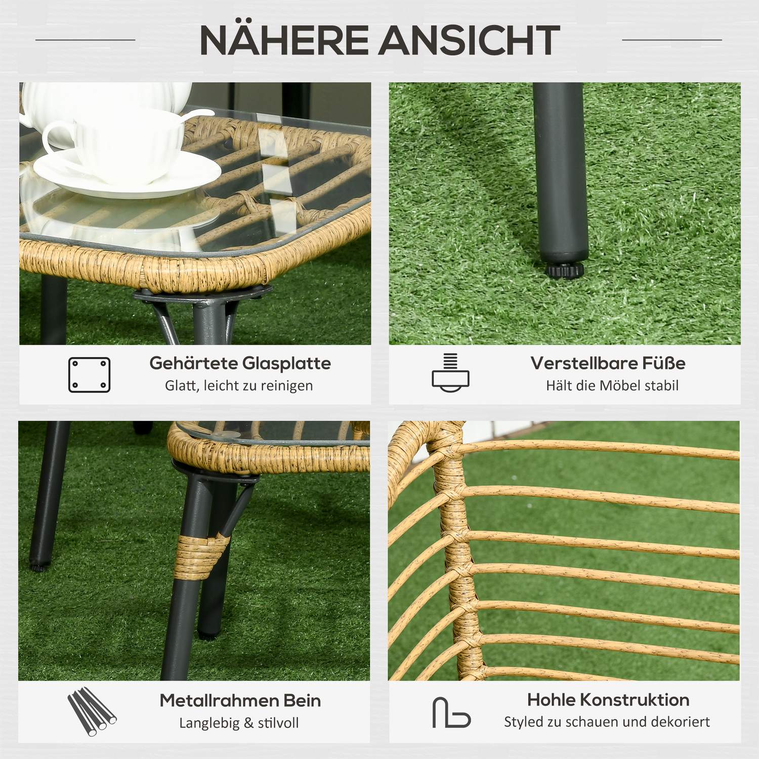 Transform your outdoor space into an inviting oasis with this 4-piece garden furniture set, made from sturdy steel and weather-resistant PE rattan in rattan. Perfect for patios, gardens and lounging by the pool, this boho-style set promises both style and durability with its soft padded cushions and elegant design. Relax and entertain in an attractive environment that offers comfort and functionality all year round.