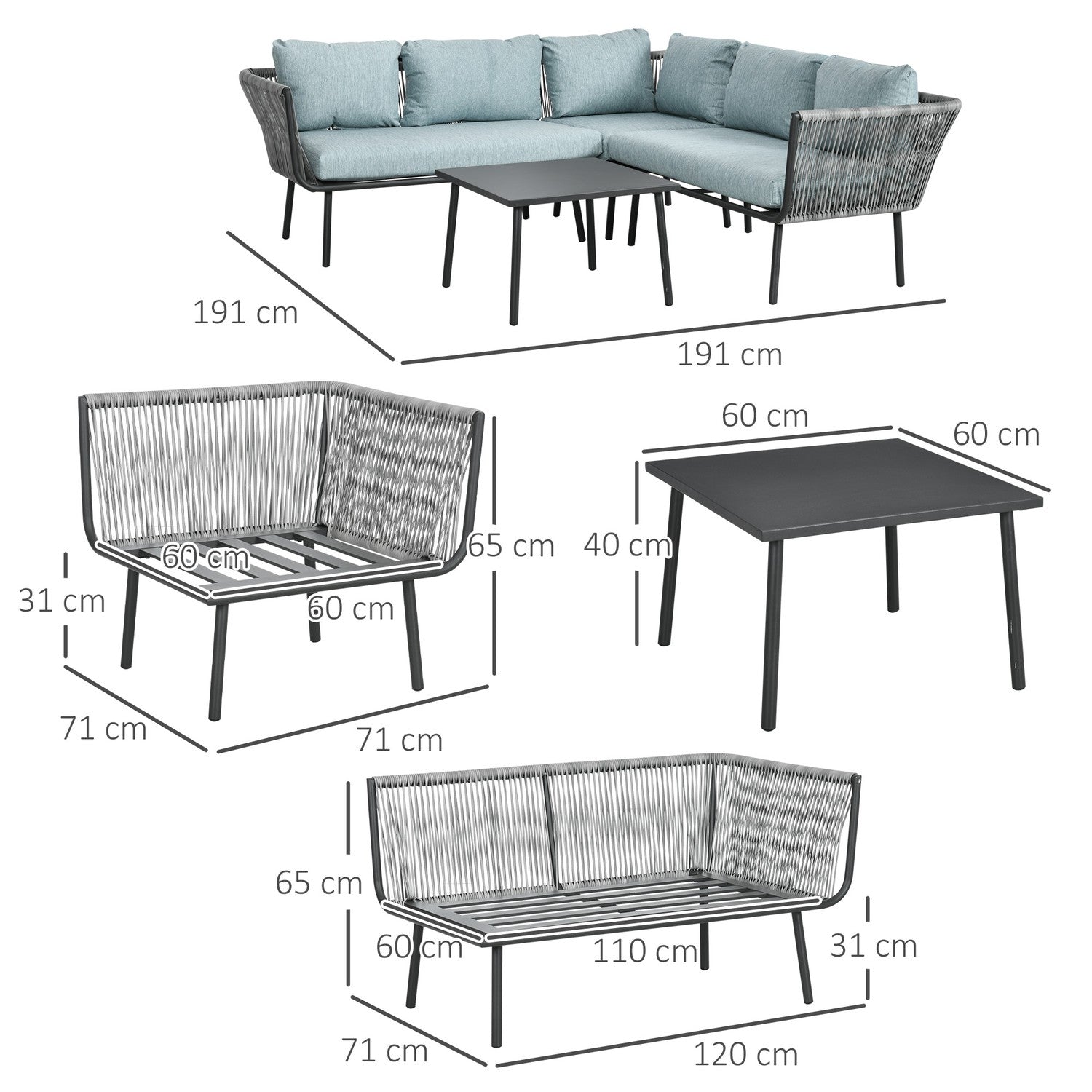 Transform your outdoor space with this elegant four-piece outdoor dining set. Within the first moments, you will appreciate the primary components: two double corner sofas, a corner sofa and a versatile square coffee table, all with a lightweight aluminum frame for durability. The table is not just for display; it has an adjustable aluminum surface for practical functions, mixing utility with elegance.