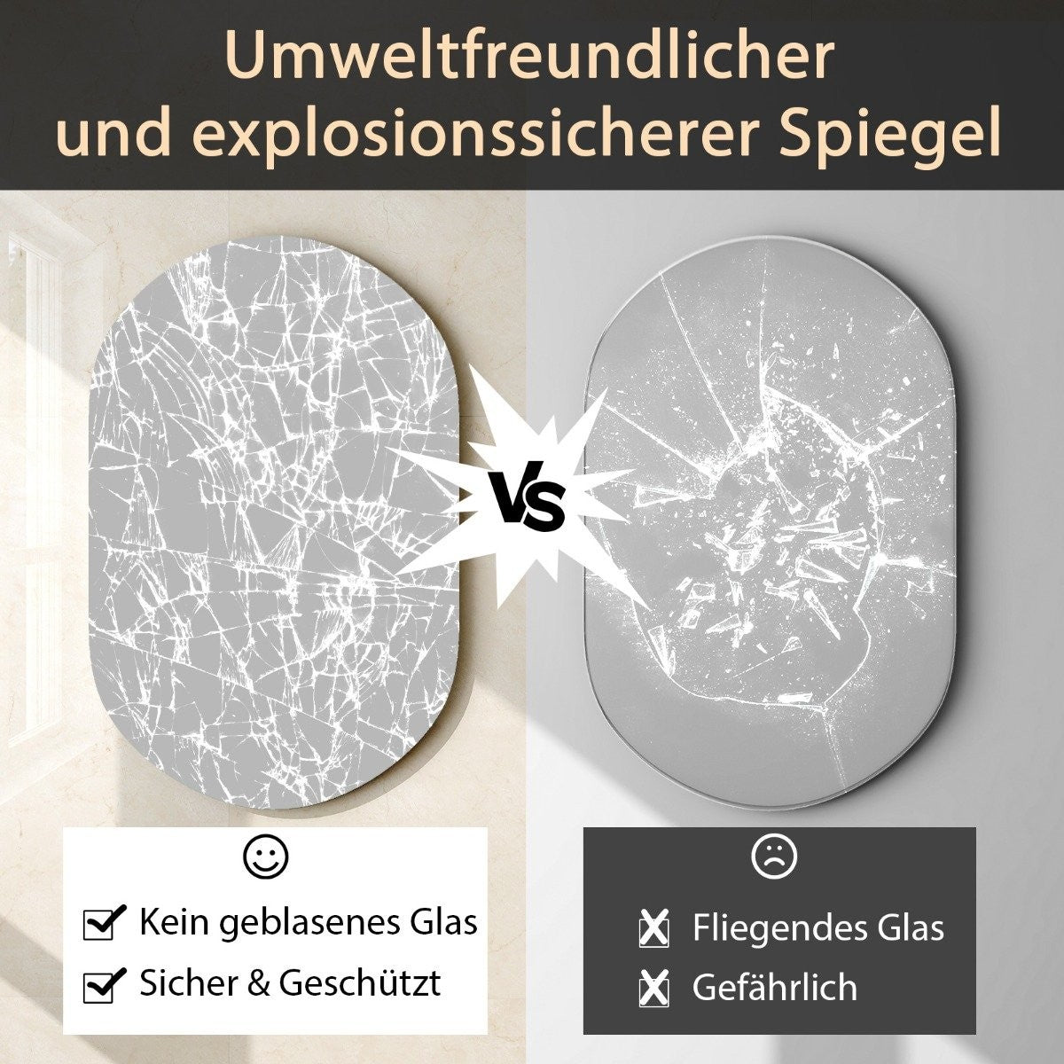 Crafted from a 4 mm thick, eco-friendly, and explosion-proof glass, this mirror guarantees safety and durability. In the unlikely event of breakage, the explosion-proof film ensures that no glass shards will scatter, providing peace of mind. The high-definition reflection is perfect for daily grooming tasks such as makeup application or shaving.