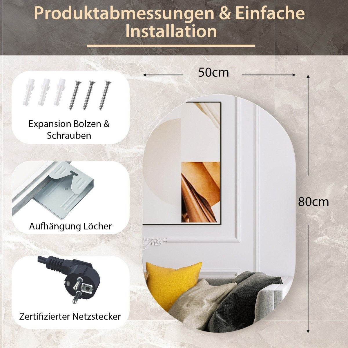 80 x 50 cm LED wall mirror oval dimmable bathroom mirror