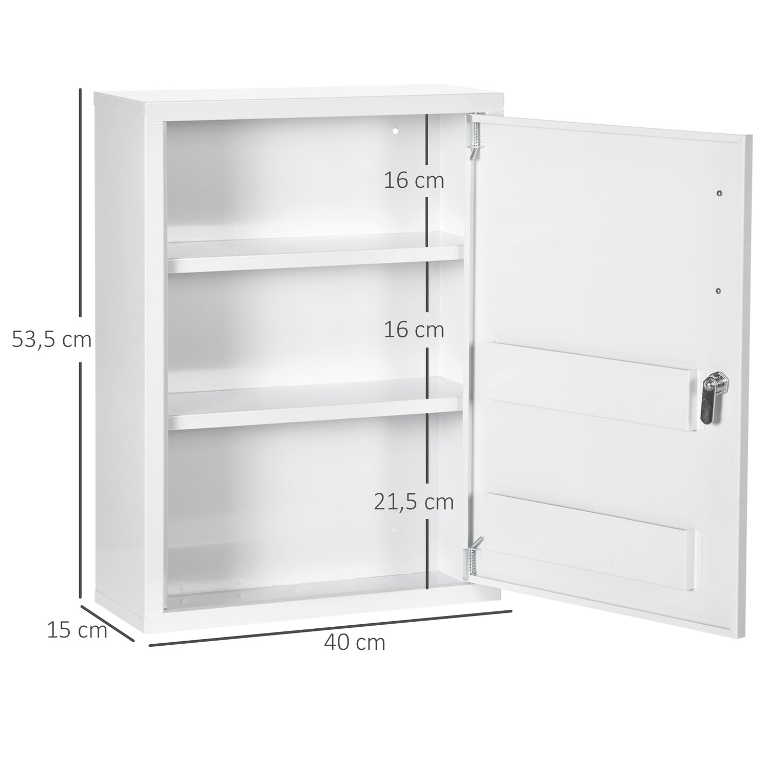 Wall-mounted pharmacy cabinet in steel, Lockable, White