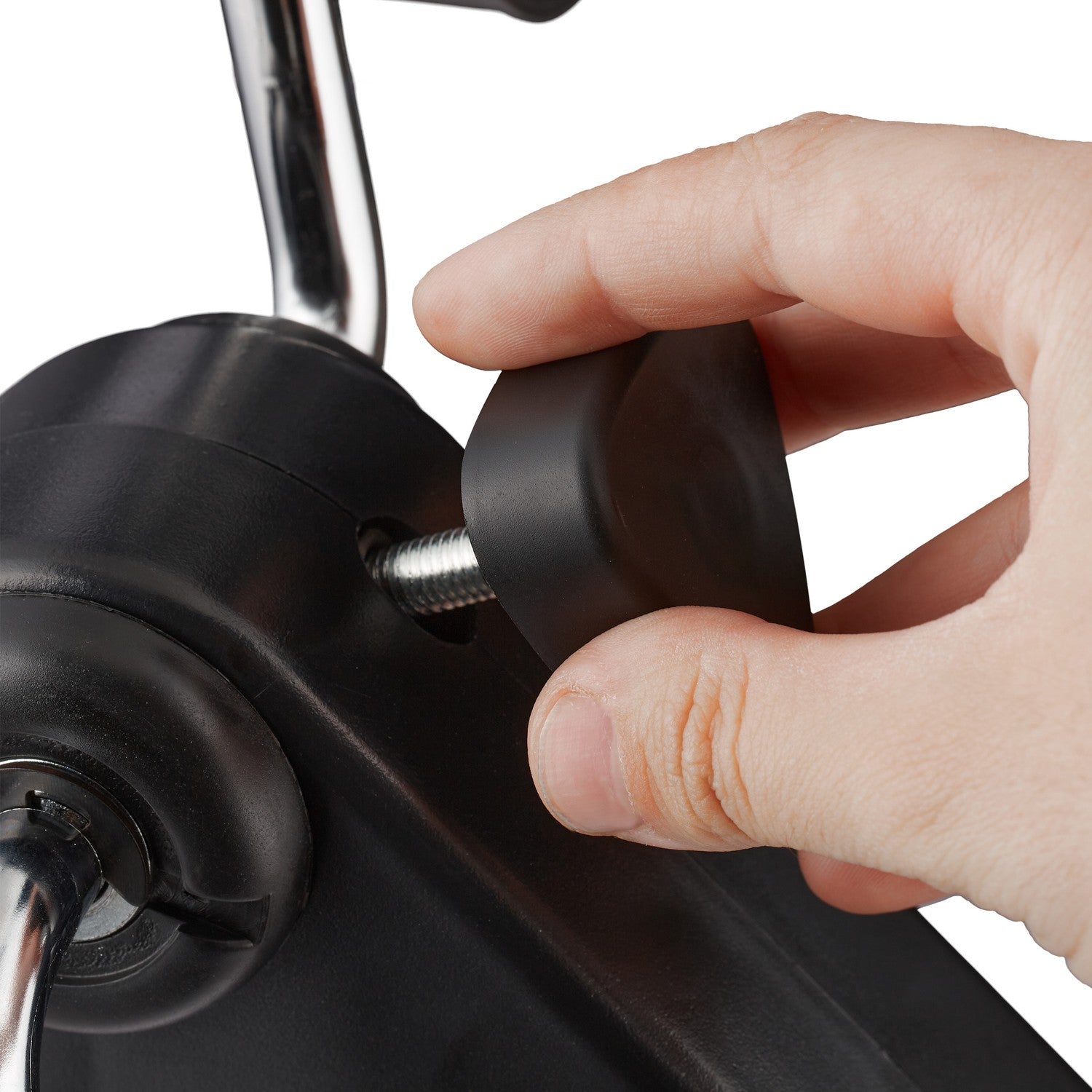 Foldable exercise machine enhances joint-friendly workouts at home or office. This compact leg and arm trainer offers versatile fitness options, making it ideal for any workspace or home gym.