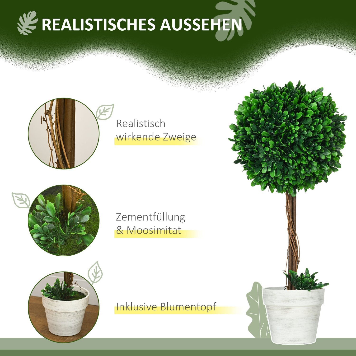 Simplify your greenery game with these maintenance-free artificial boxwood trees. They captivate with their full, spherical shape and promise to transform any environment into a tranquil green oasis. The detailed craftsmanship of their PE and steel construction ensures they remain vibrant and fresh all year round. Whether you're looking to enhance a living room or elevate your patio, these trees are your go-to for a carefree touch of nature. Don't settle for lifeless plants - take home lasting greenery today.