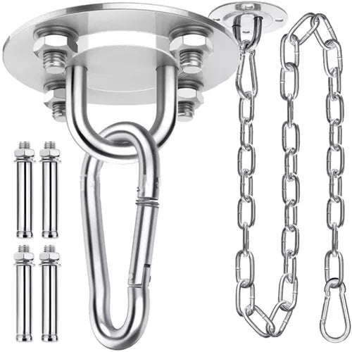 - COMPLETE SET – the set includes solid elements: carabiners, expansion anchors, a strong and long chain and a ceiling bracket.