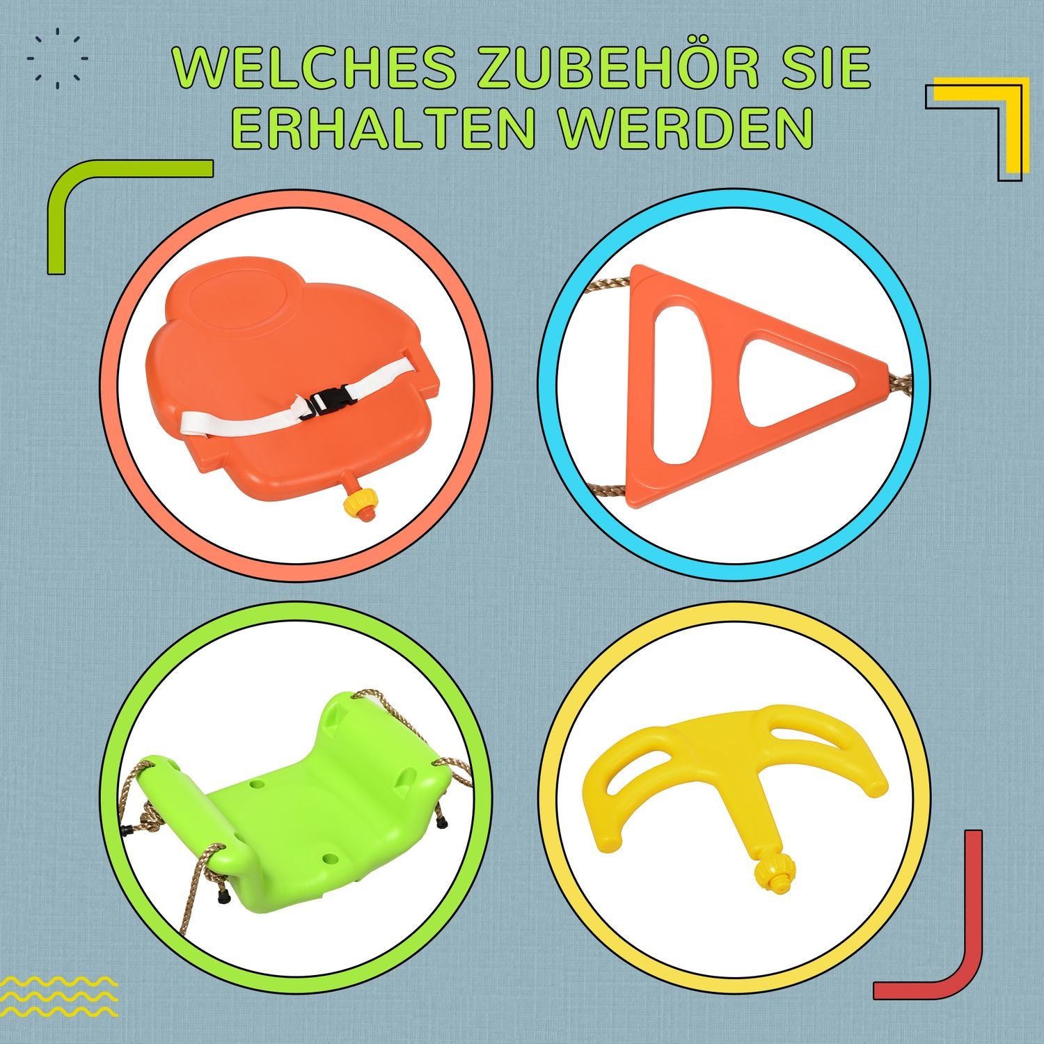 Transform playtime with this versatile baby swing, a perfect playground gem for your little adventurers! With its robust design and adjustable length, this baby swing comfortably supports up to 70 kg. Features such as a comfortable backrest, safety belt and front safety bar let your child swing safely while you adjust the rope to fit both indoors and outdoors.