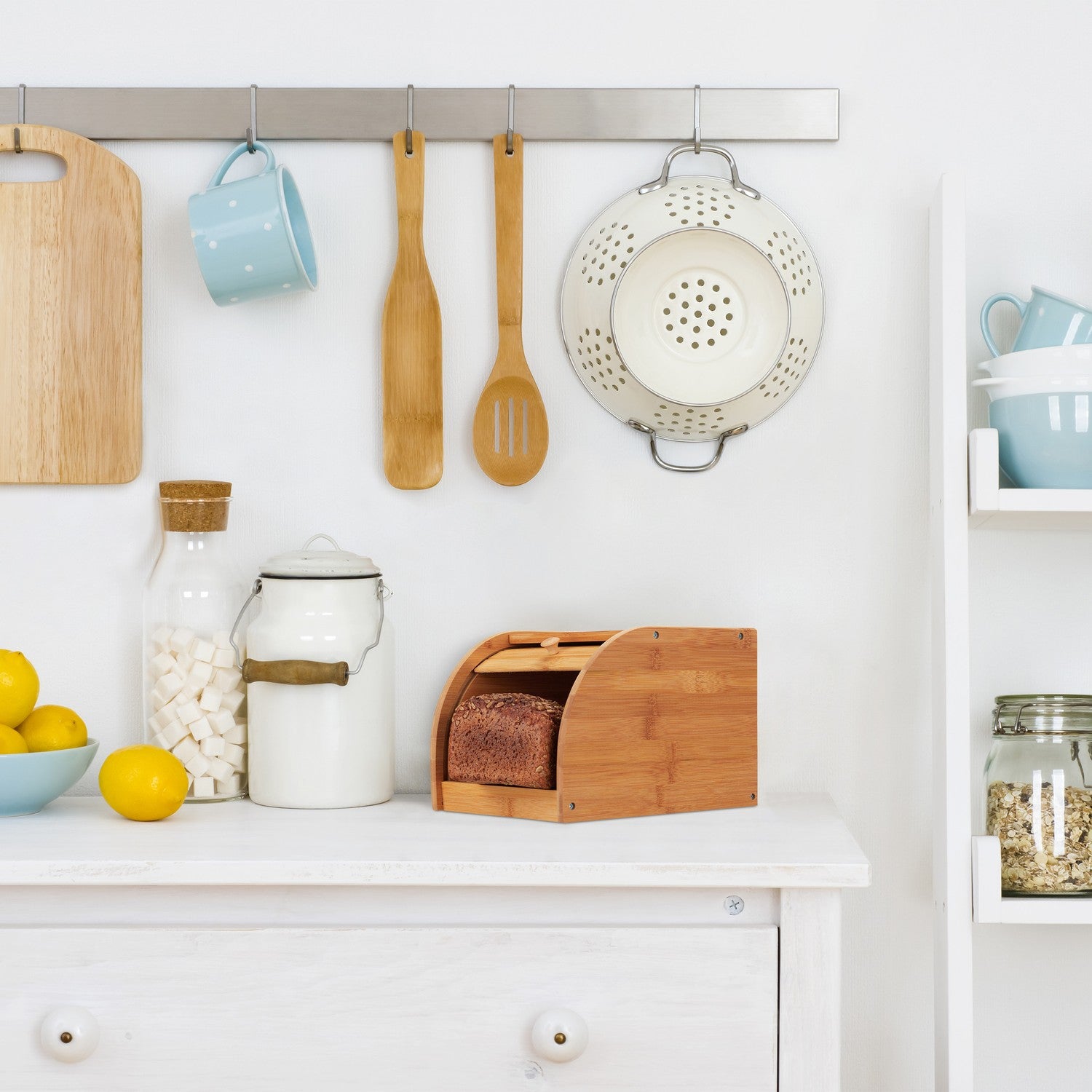 Keep your baked goods fresh longer with this rolling bread basket, crafted from durable bamboo and MDF for a stylish, eco-friendly kitchen solution.
