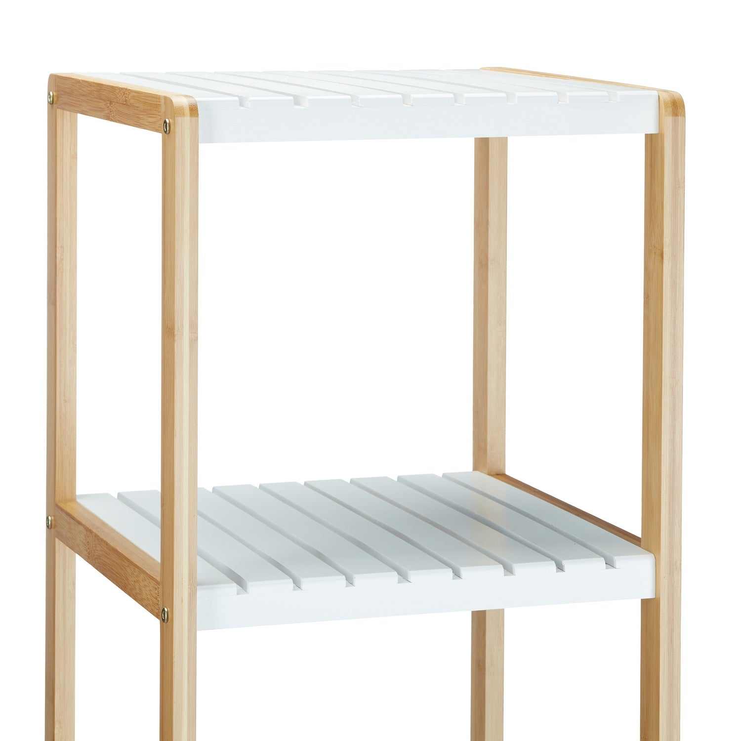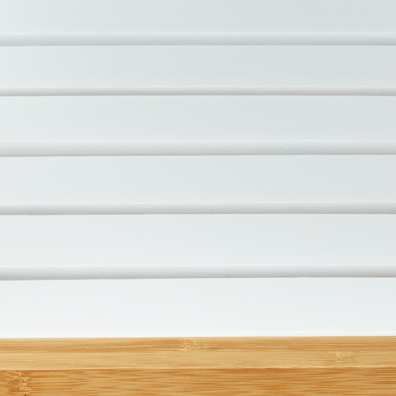 - Enjoy a stylish contrast with white painted shelves against natural bamboo.