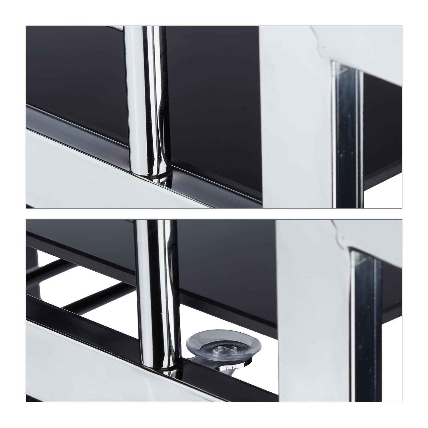 - Delivers a luxurious touch with a shiny metal frame and black glass tops.