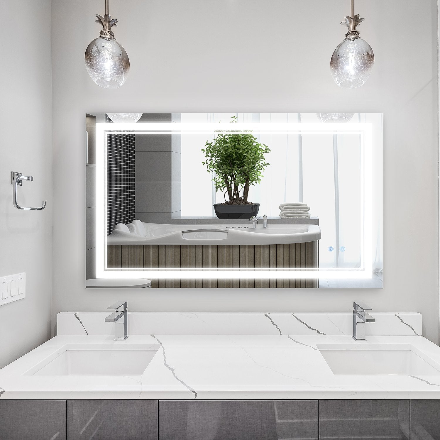 Designed with both aesthetics and functionality in mind, this bathroom mirror stands out with its elegant design and user-friendly features. Its smart touch function enables ease of use, while the durable construction ensures long life. Whether mounted vertically or horizontally, it meets splash-proof standards that guarantee safety and performance over time. Upgrade your bathroom game and enjoy unparalleled functionality. Order now and redefine your routine with a mirror that really shines.