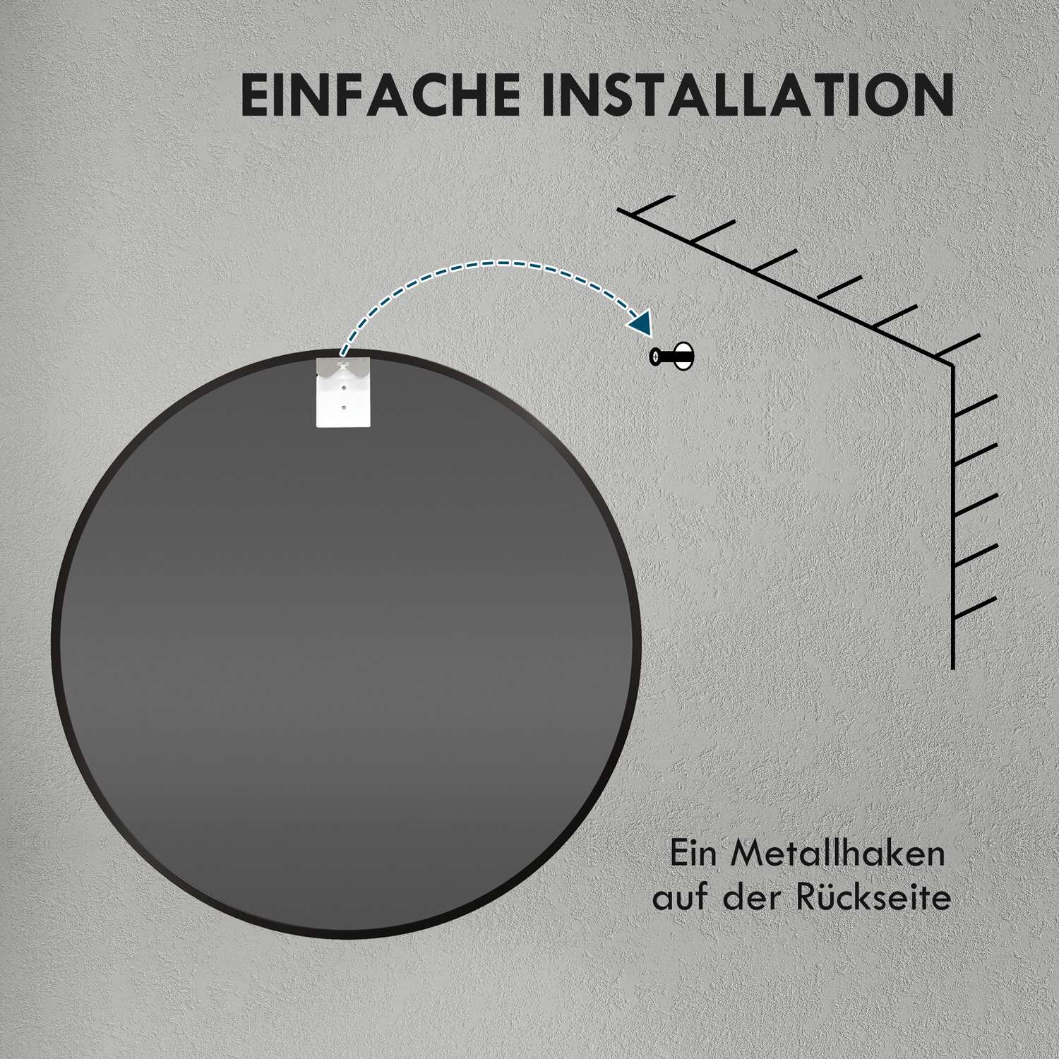Transform your daily routine with our modern round bathroom mirror, with an elegant aluminum alloy frame that combines style and durability. Perfect for precise cosmetic application or as a chic addition to any living space, this mirror fits seamlessly into modern homes. For your peace of mind, it includes a splint protection film that ensures safety during use and transport. Installation is easy thanks to the handy metal hook – no DIY skills required.