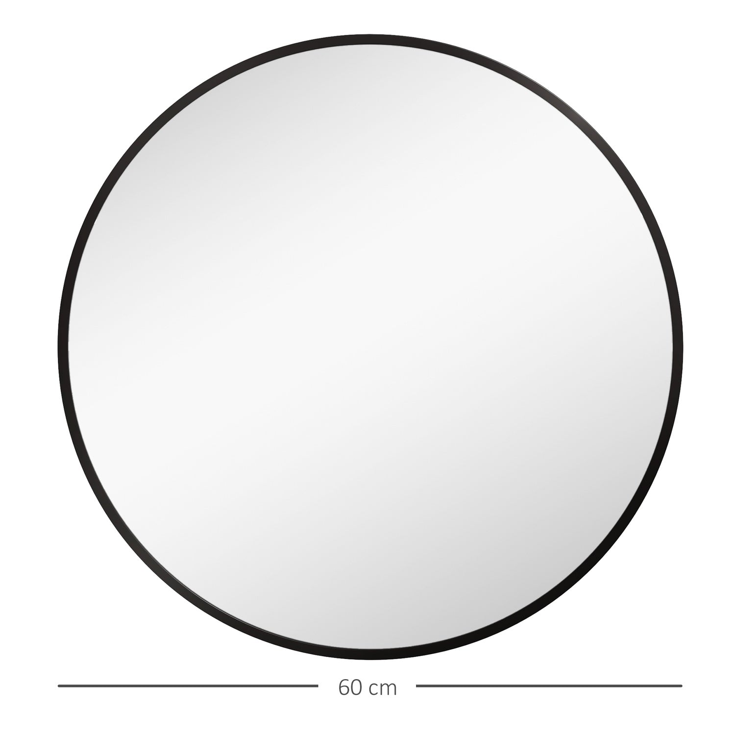 Round black bathroom mirror, aluminum frame, Ø60 cm