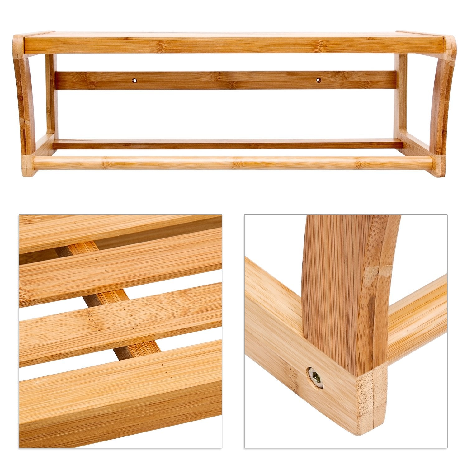 Wall mounted bathroom shelf in bamboo enhances storage and style, offering a practical solution for small spaces. This shelf combines functionality with a natural wood feel, perfect for any bathroom decor.