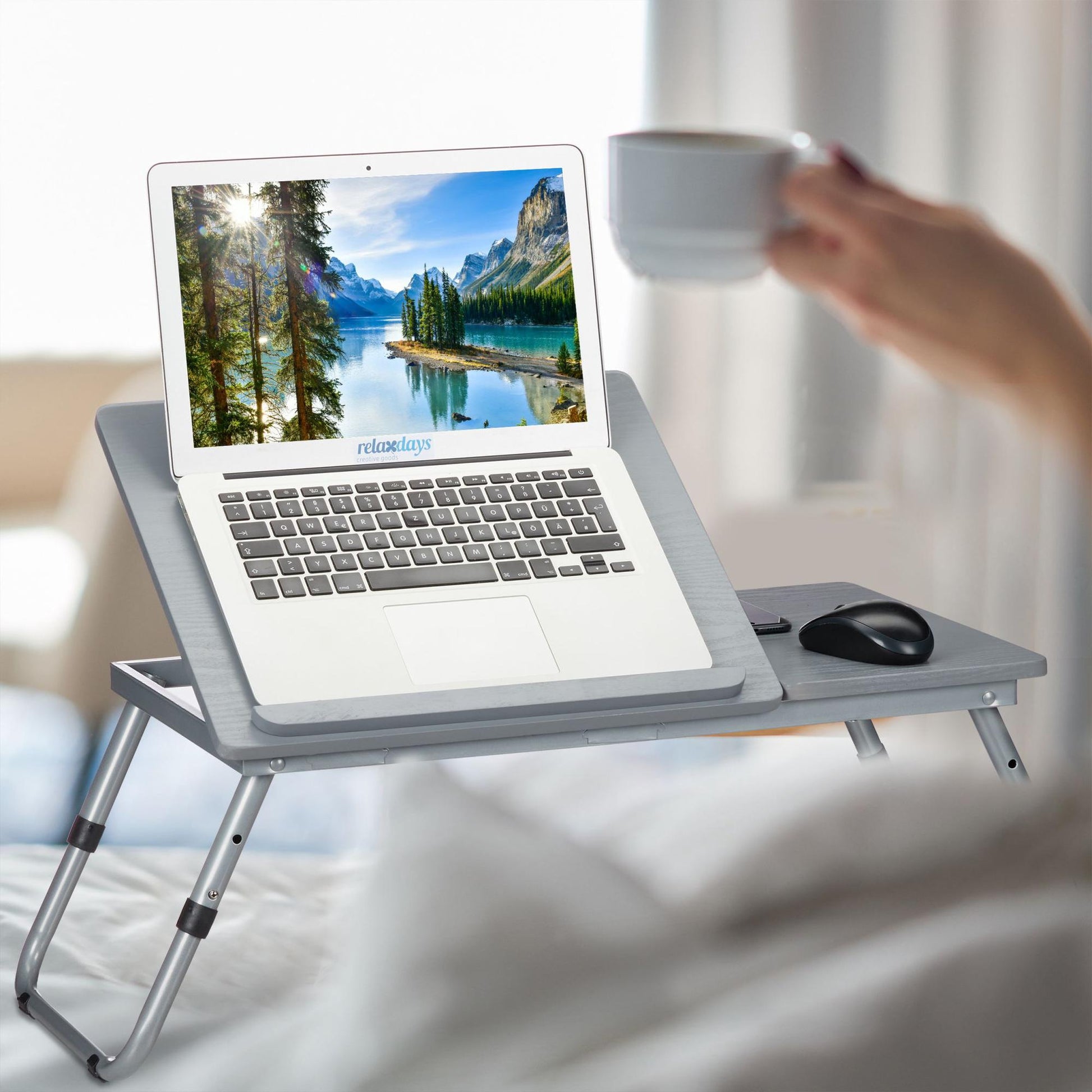 Ergonomic laptop table enhances home office comfort, whether you're in bed, on the sofa, or outside. Adjustable surface angles ensure optimal positioning for laptops and tablets, boosting productivity.