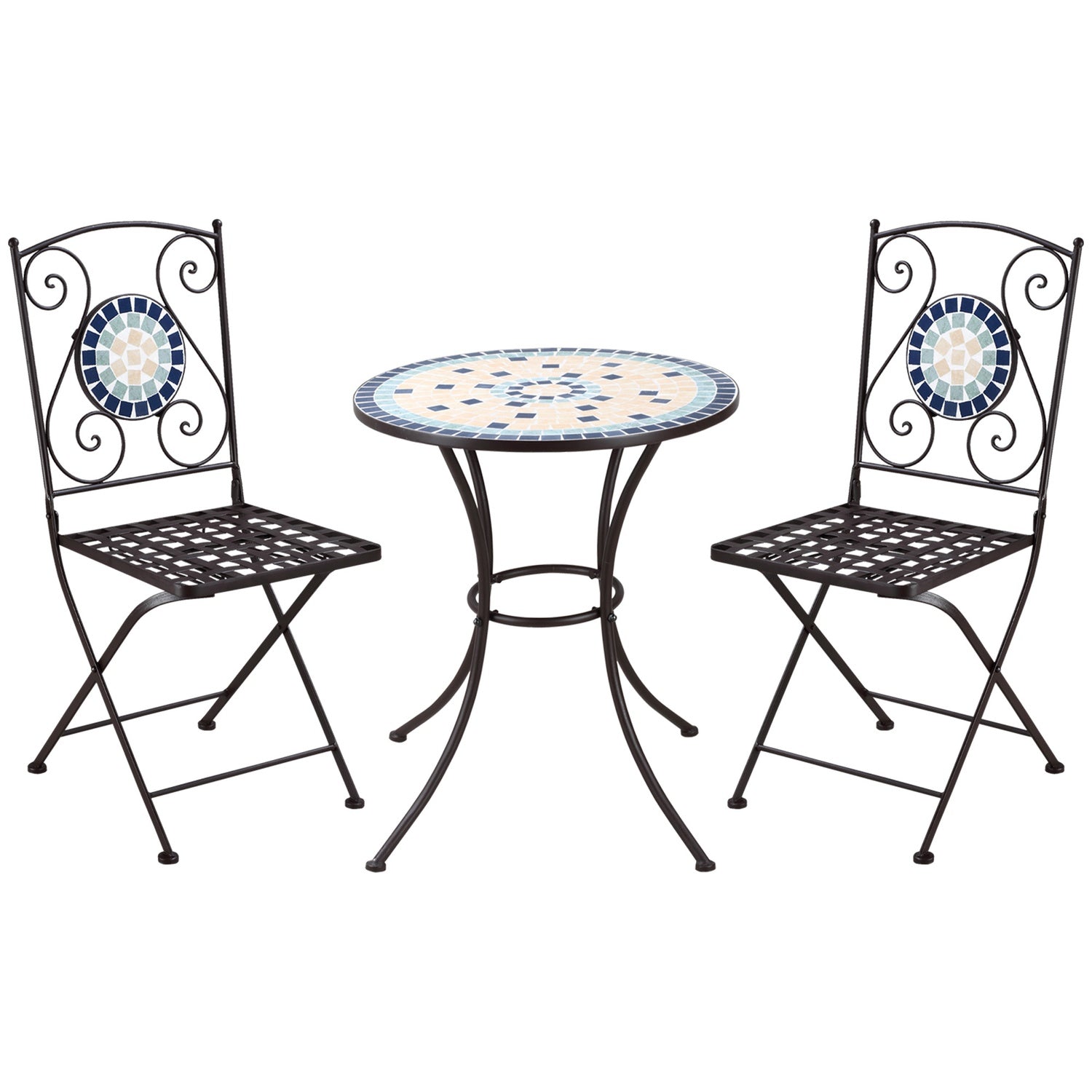 This bistro set is made of sturdy iron and ceramic plates and promises both aesthetics and utility. The mosaic design not only captivates, but also withstands the outdoor elements, ensuring long-lasting enjoyment. Assembling the table is easy with included instructions, making it ready for your next gathering. Upgrade your outdoor space today and enjoy the compliment-catching style this set provides.