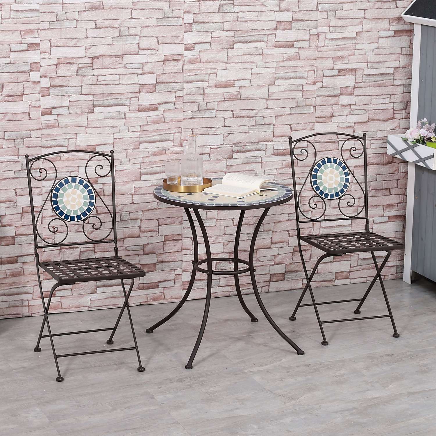 Transform your outdoor relaxation with this charming 3-piece bistro set, featuring an elegant round table and two ergonomic folding chairs adorned with exquisite mosaic stones. Whether enjoying afternoon tea or hosting friends, this weatherproof installation elevates your patio or garden experience with its unique style and practicality.
