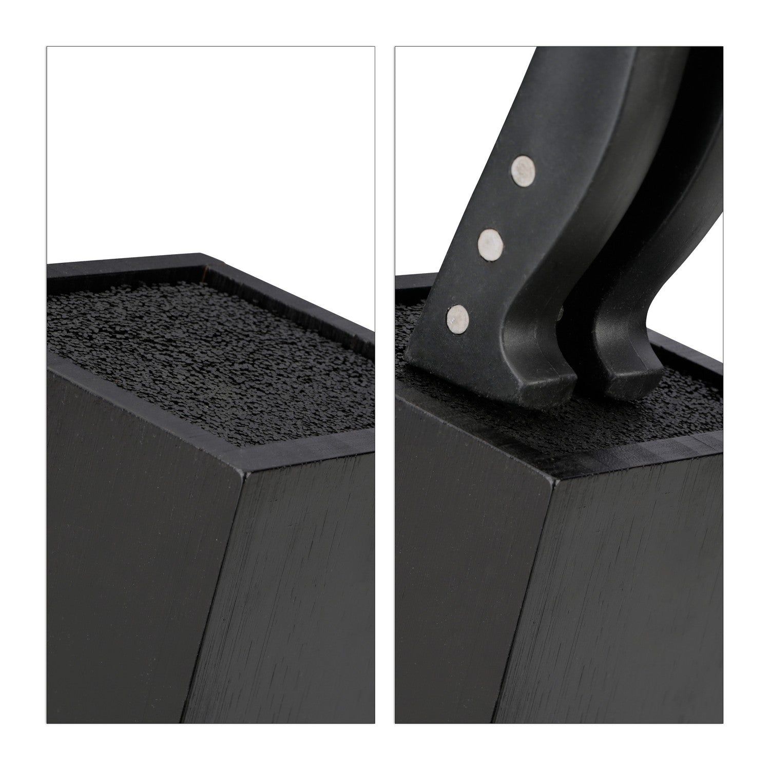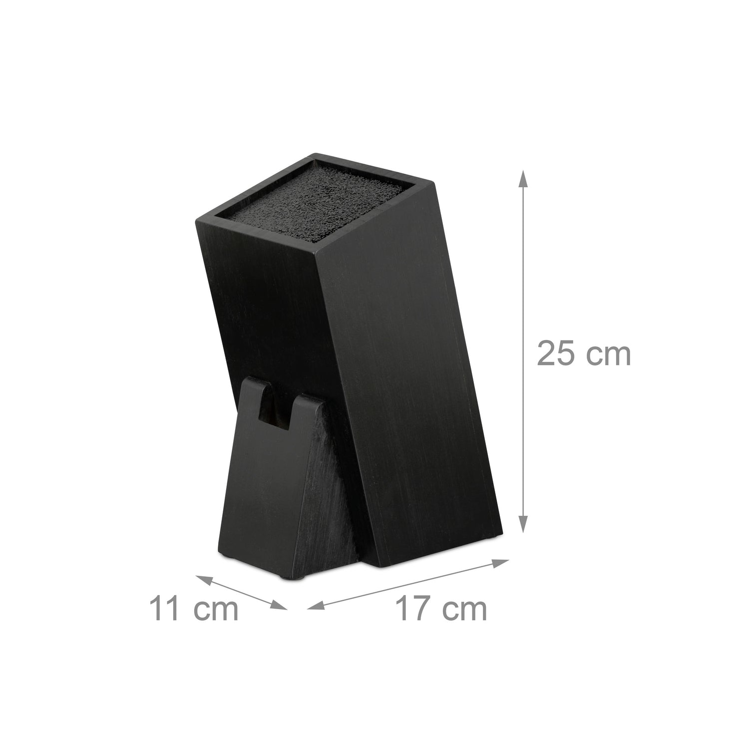 The black bamboo knife block offers elegant and practical knife storage, enhancing kitchen aesthetics while keeping blades sharp and protected.