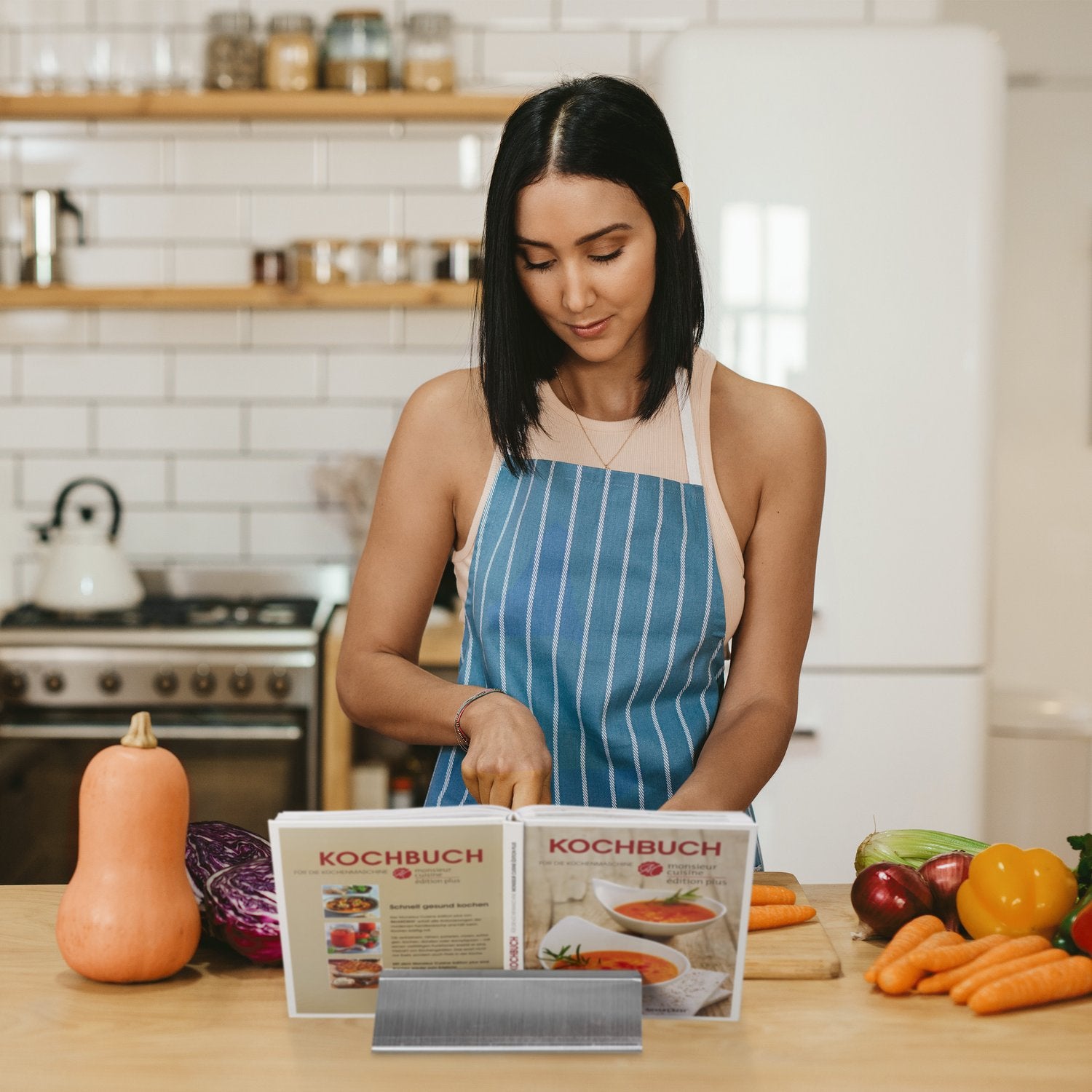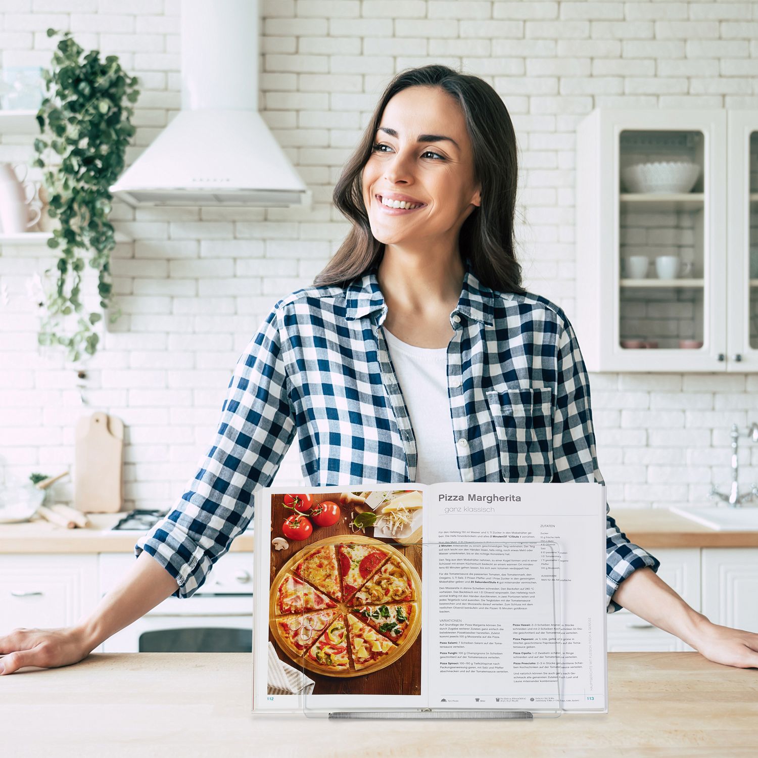 The cookbook holder with splash guard enhances your cooking experience by keeping recipes visible and protected. Crafted from stainless steel and glass, it ensures durability and ease of use.