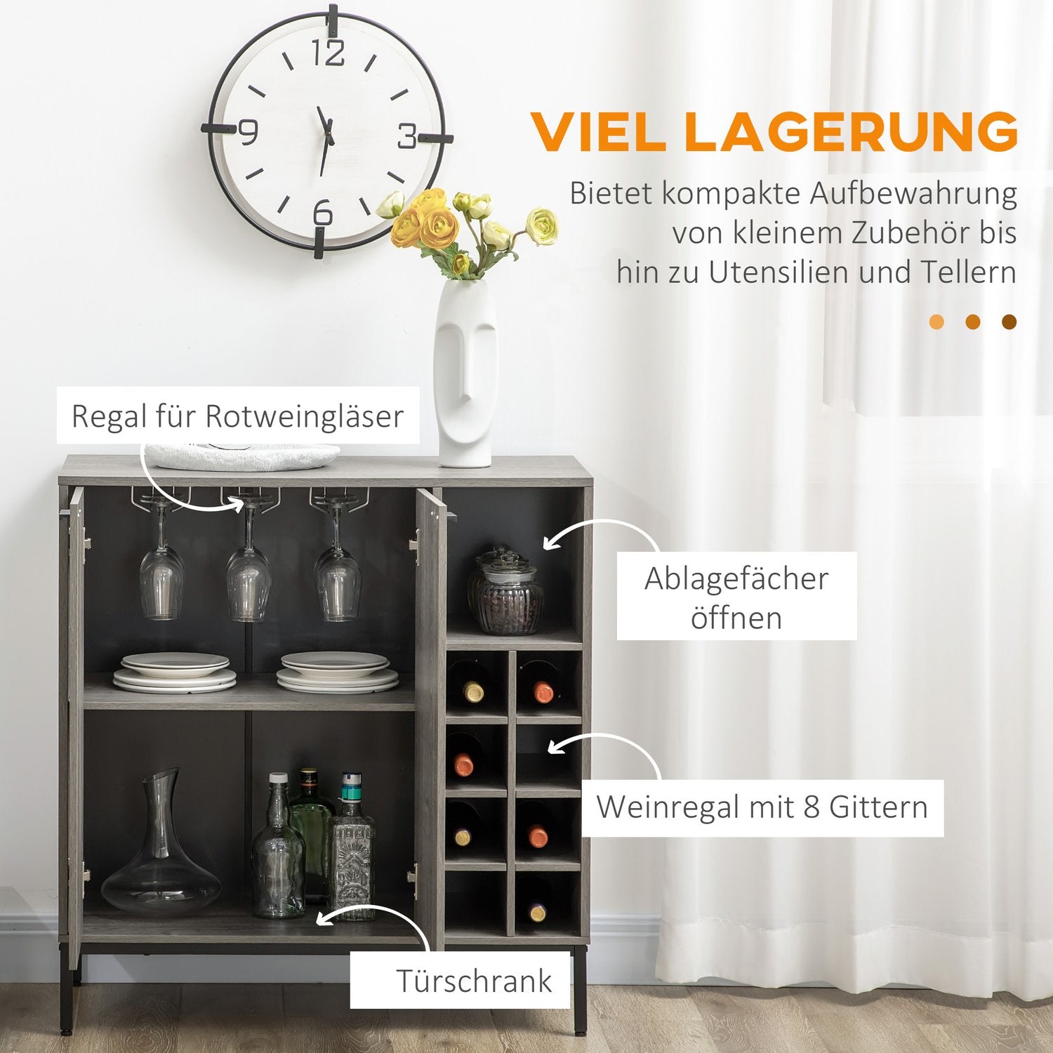 Transform your space with this versatile sideboard, perfect for wine lovers and organization enthusiasts alike. This elegant sideboard features an elegant wine rack that securely holds up to 8 bottles and a dedicated glass holder for up to 12 glasses, ensuring your collection is both safely stored and beautifully displayed in your kitchen, dining room or living room.