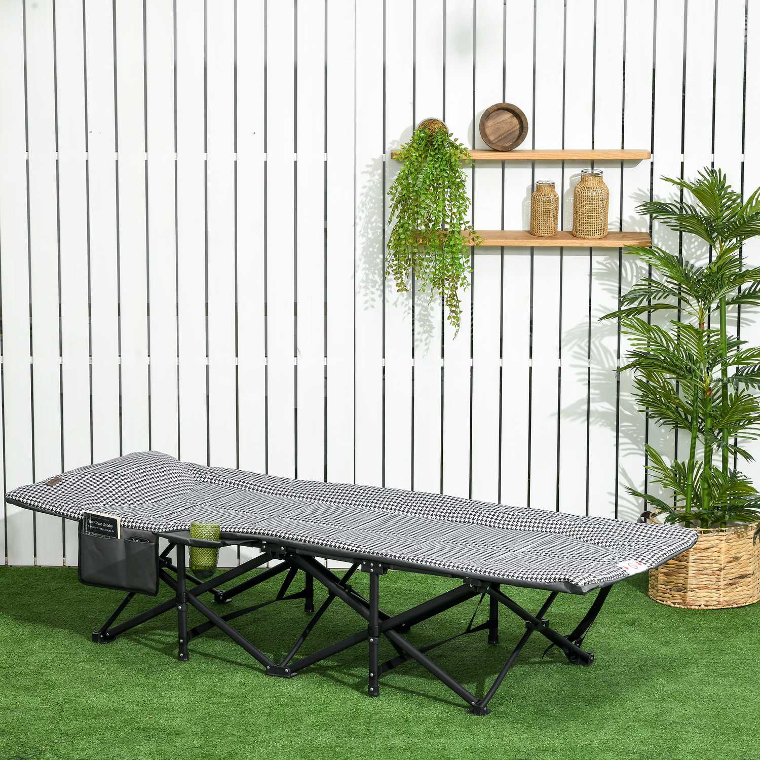 Camping bed with bag & cup holder, black, 120 kg capacity