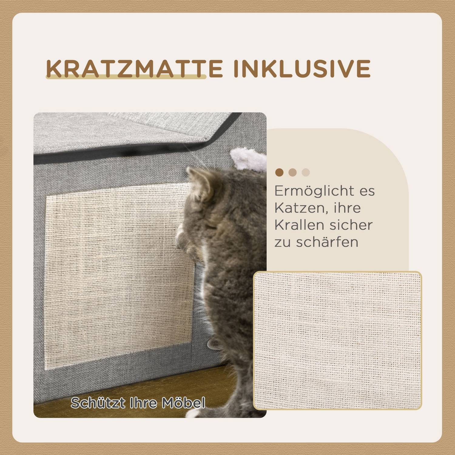 - Equipped with a scratching mat to promote healthy claws.