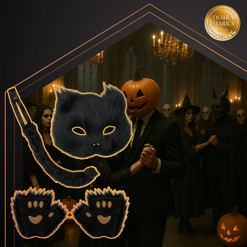 Cat/Fox Costume Set, Black – Mask, Tail, Paws