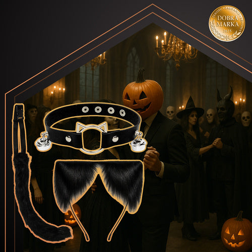 - Includes adjustable tail, headband with ears, and choker with bells for versatile styling.