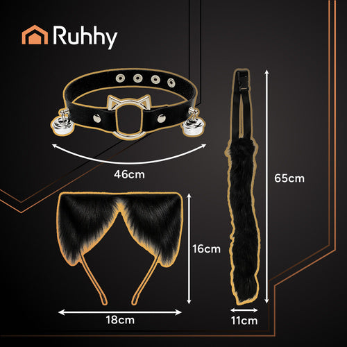 The RUHHY 3-in-1 costume set transforms you into a captivating cat, fox, or wolf with its adjustable tail, ears, and choker. Perfect for cosplay, parties, or photoshoots, this set is your ticket to creative expression.