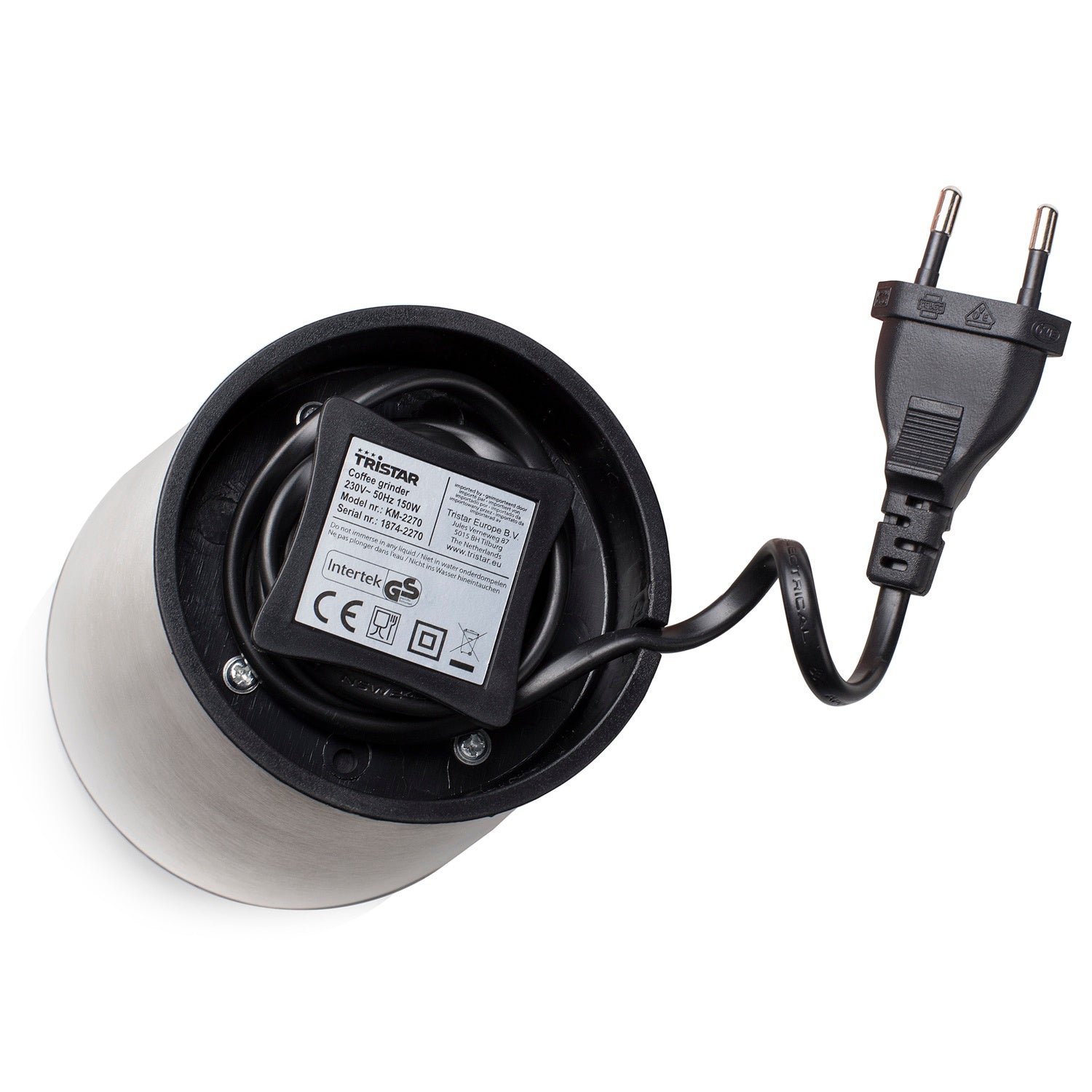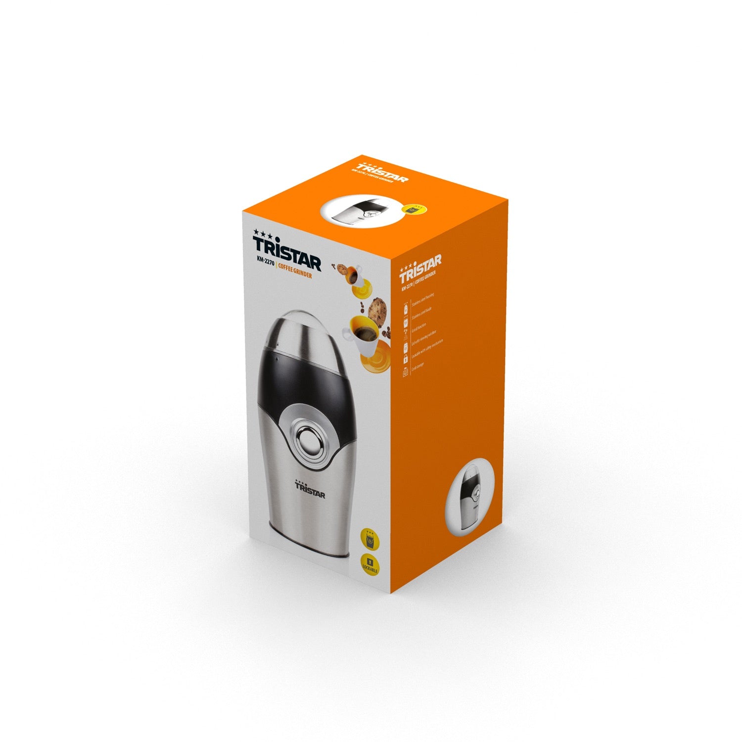 Coffee grinder in stainless steel with an elegant 50s design. You can use it for up to 70 grams of coffee per grind, which corresponds to about 10 cups of coffee.