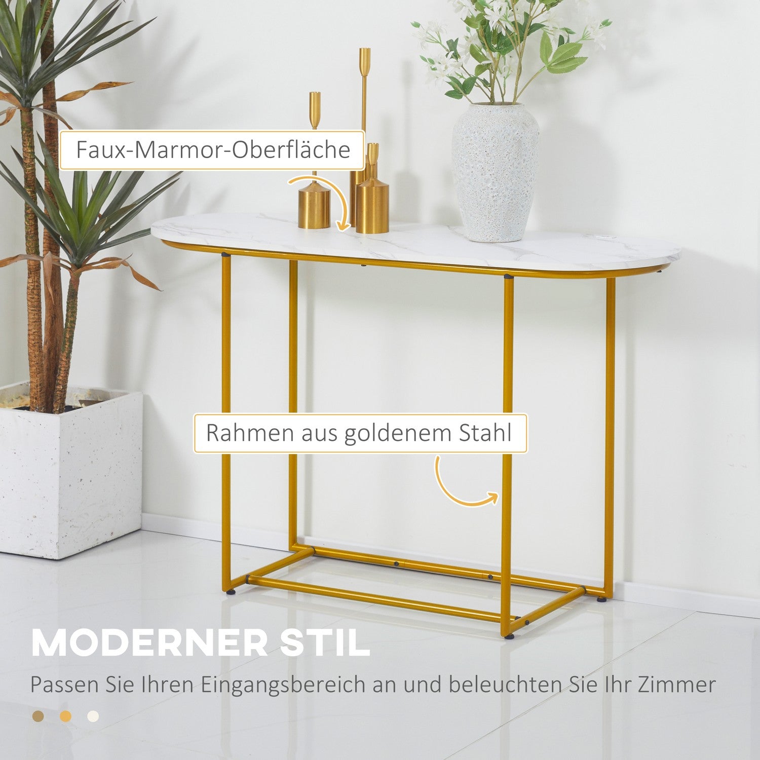 Modern console table - steel, white & gold, 120x40x75 cm