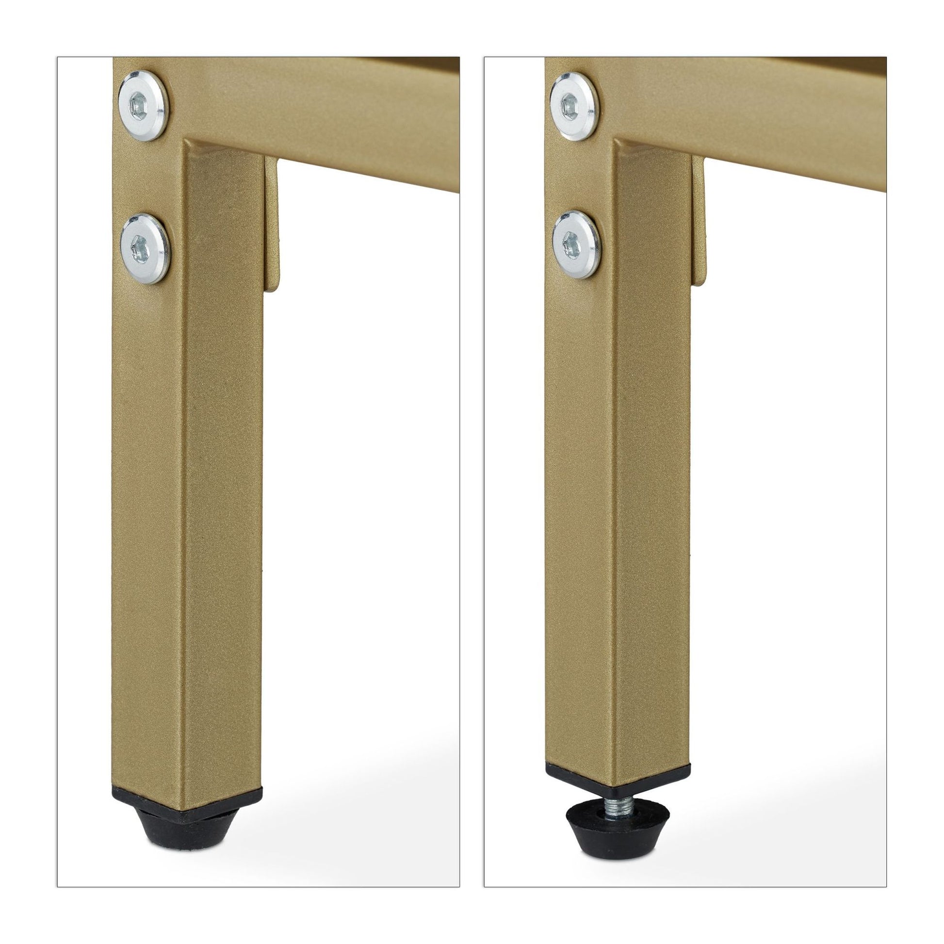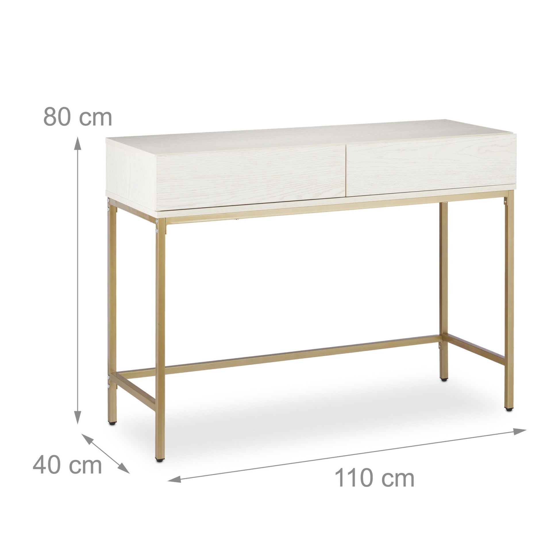- Material: Gold-colored metal legs, white wooden design
