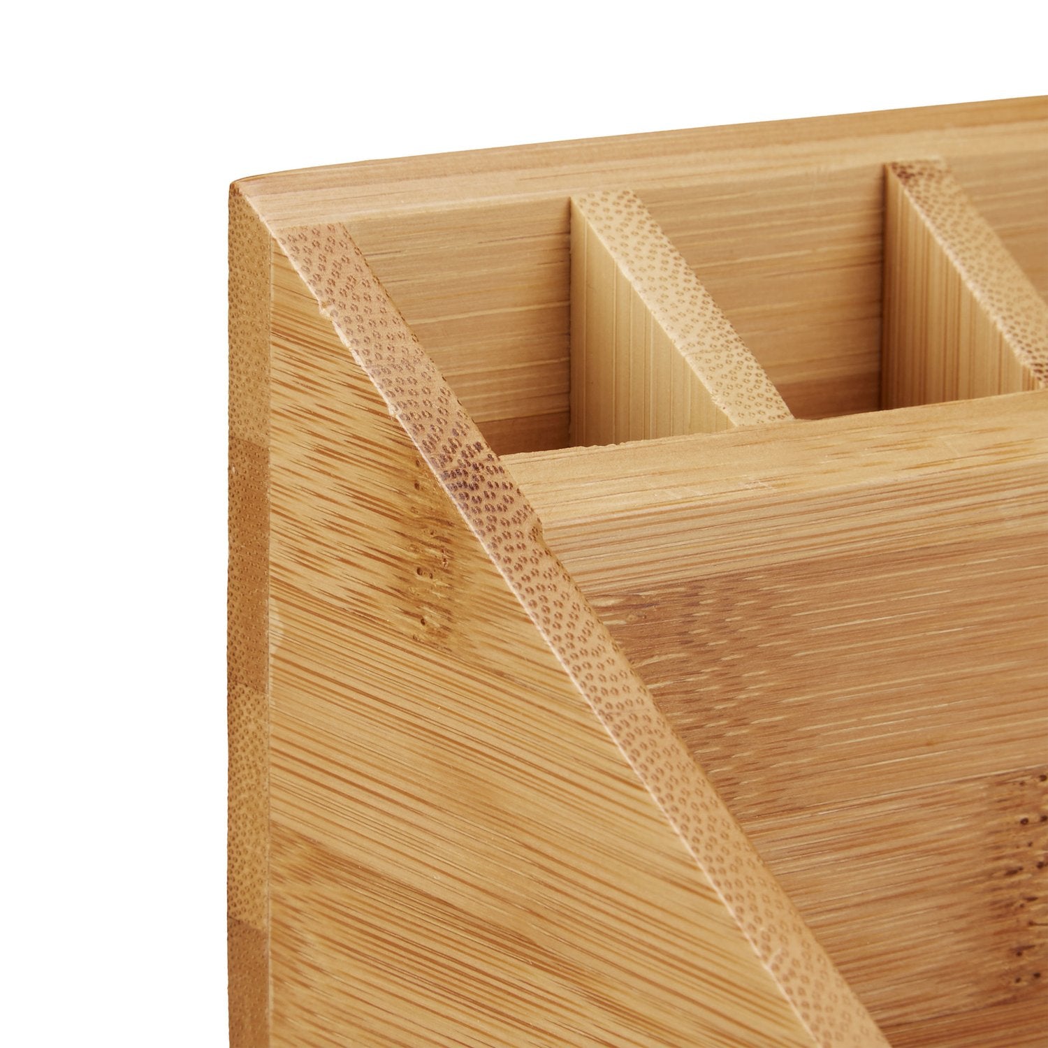 The bamboo desk organizer enhances workspace efficiency with its natural aesthetic and ample storage for writing tools.