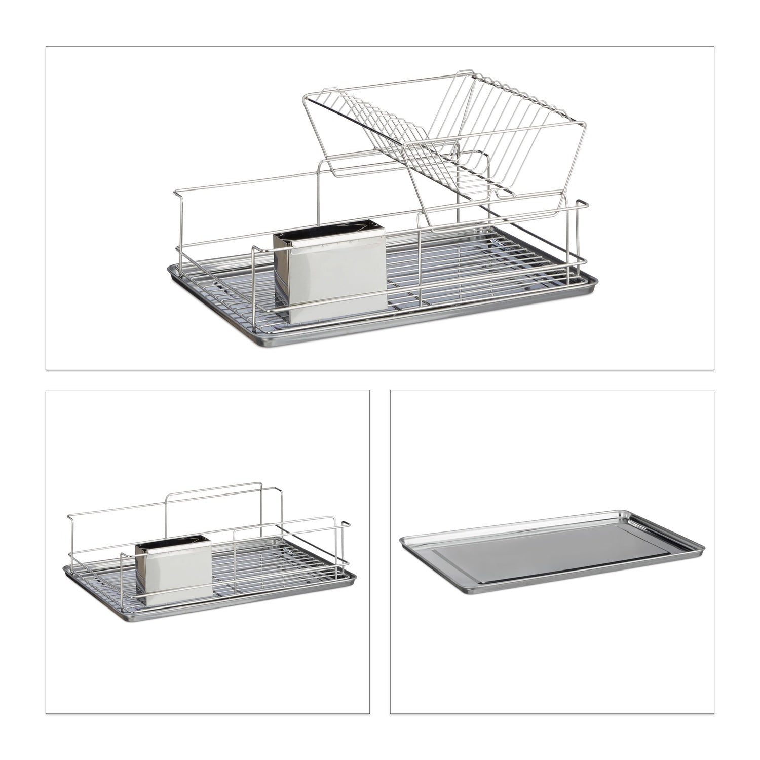 Stainless steel dish rack with cutlery basket streamlines your kitchen routine by eliminating hand drying. This compact, efficient solution maximizes space while accommodating plates, cups, and utensils.