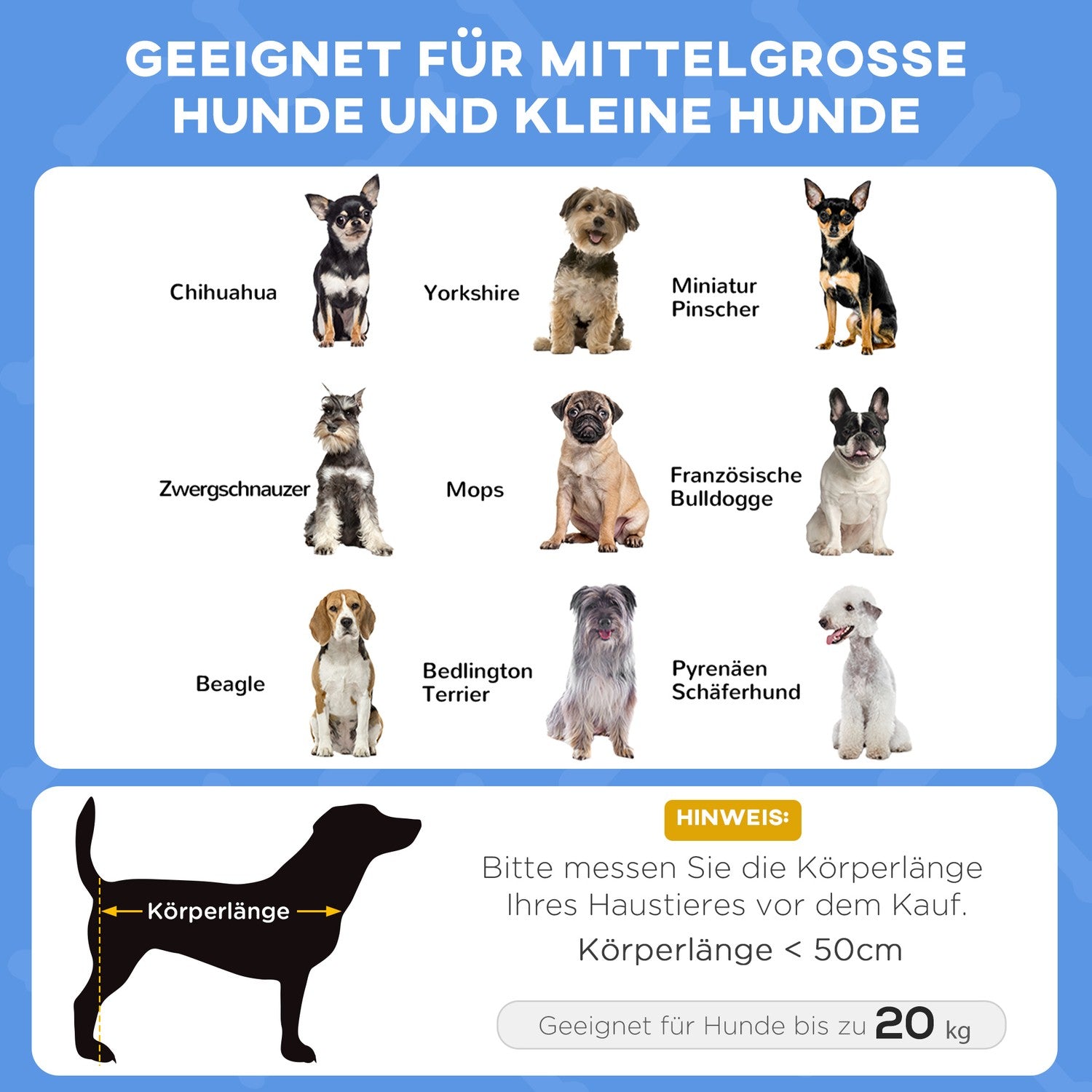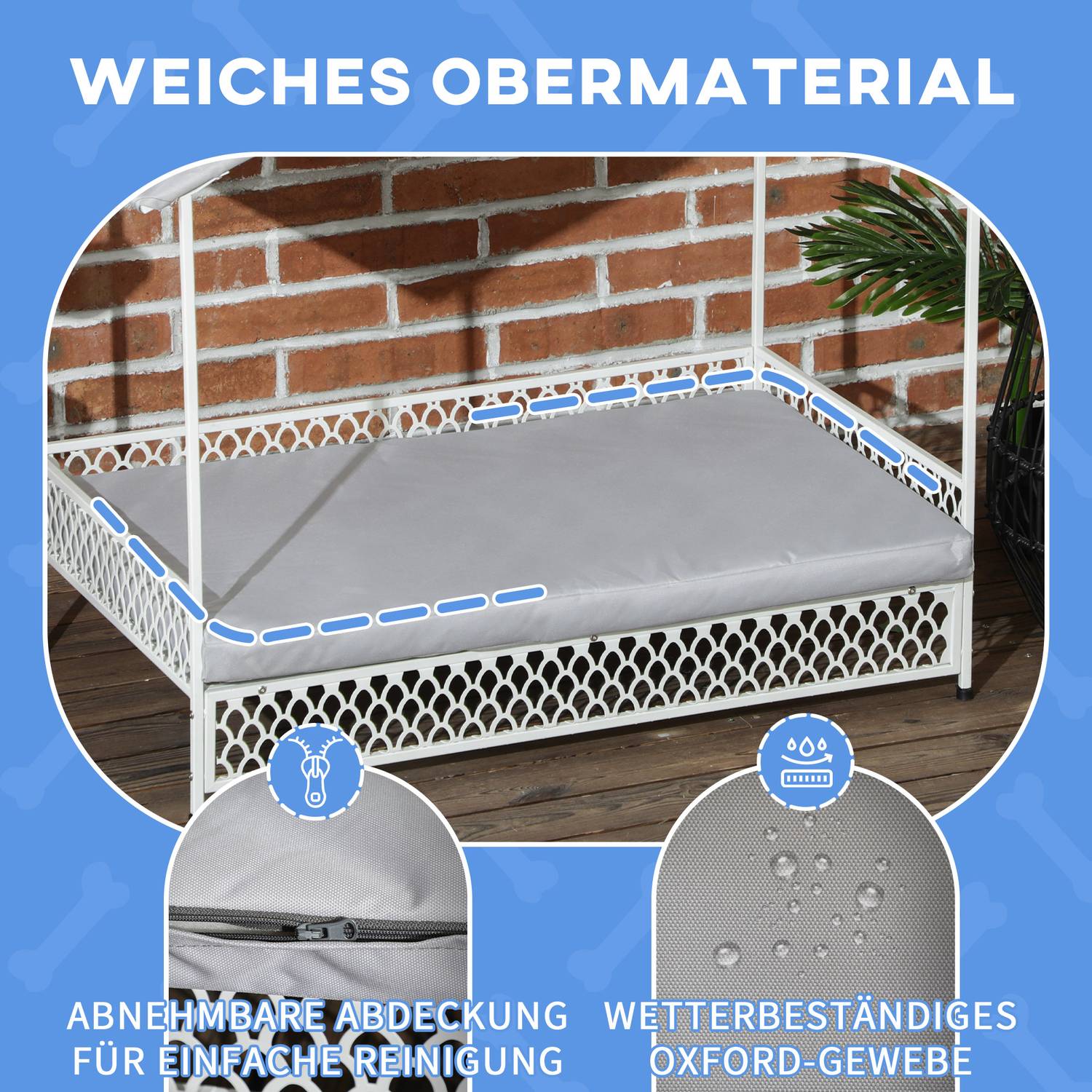 Suitable for medium-sized dogs up to 20kg and 50cm shoulder height, such as Beagles and Border Collies, this dog bed offers a blend of comfort and resilience. Easy to assemble, it's made from waterproof Oxford fabric and a sturdy steel frame, making it a reliable addition to any outdoor environment. Don't just give your dog a bed; give them an experience in relaxation and well-being. Upgrade your puppy's relaxing game now!