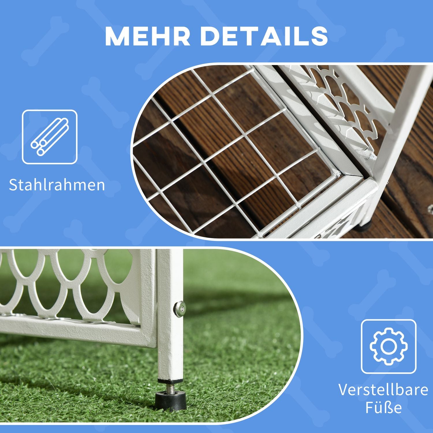 - Raised floor design keeps pets away from cold, damp surfaces.