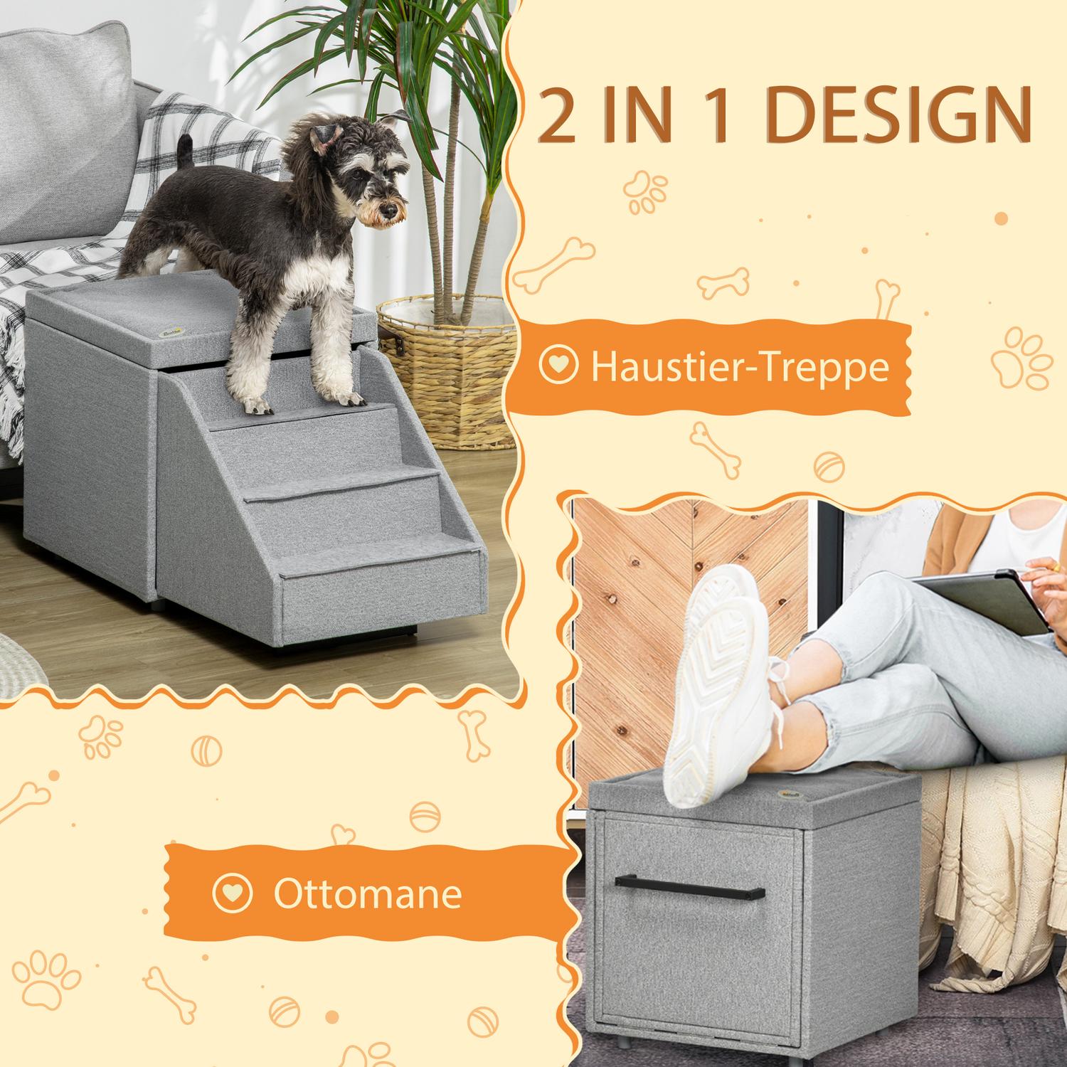 Pet Stairs and Storage - 4 Step Polyester, Light Grey