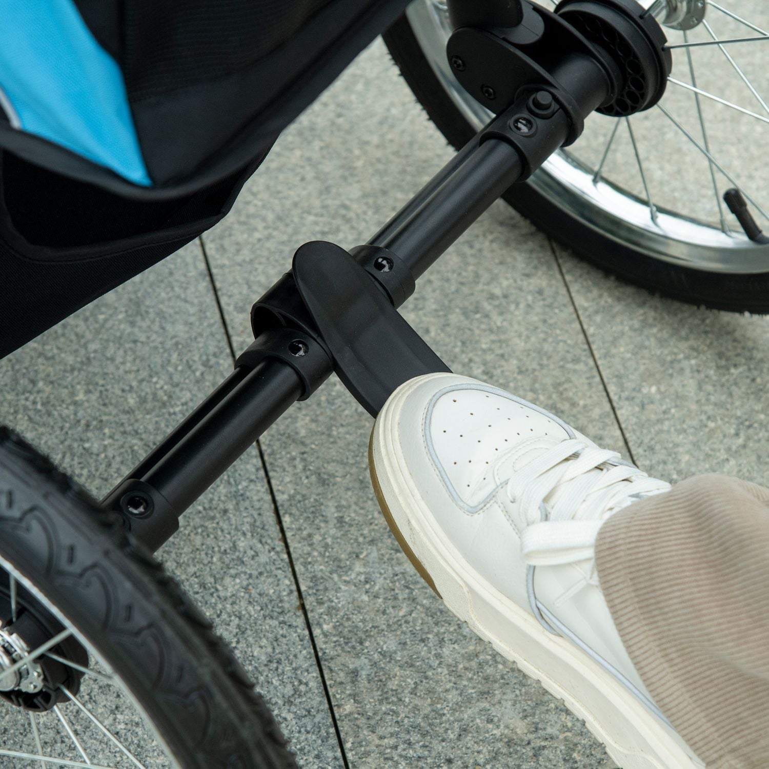 - Terrain wheels and lockable front wheel for smooth jogging.