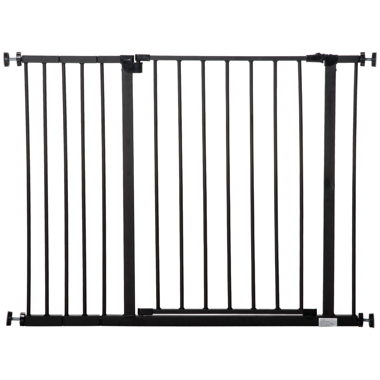 Pet Dog Gate - Black Steel, No-Drill, 76-107x76cm
