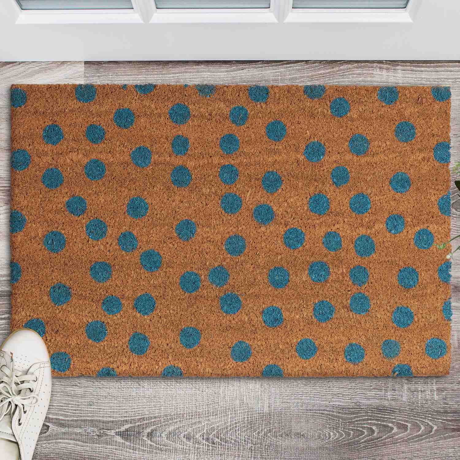 Enhance your home's entrance with a natural coconut fiber doormat featuring blue dots, offering both style and practicality. This eco-friendly mat is perfect for indoor and outdoor use, ensuring durability in all seasons.