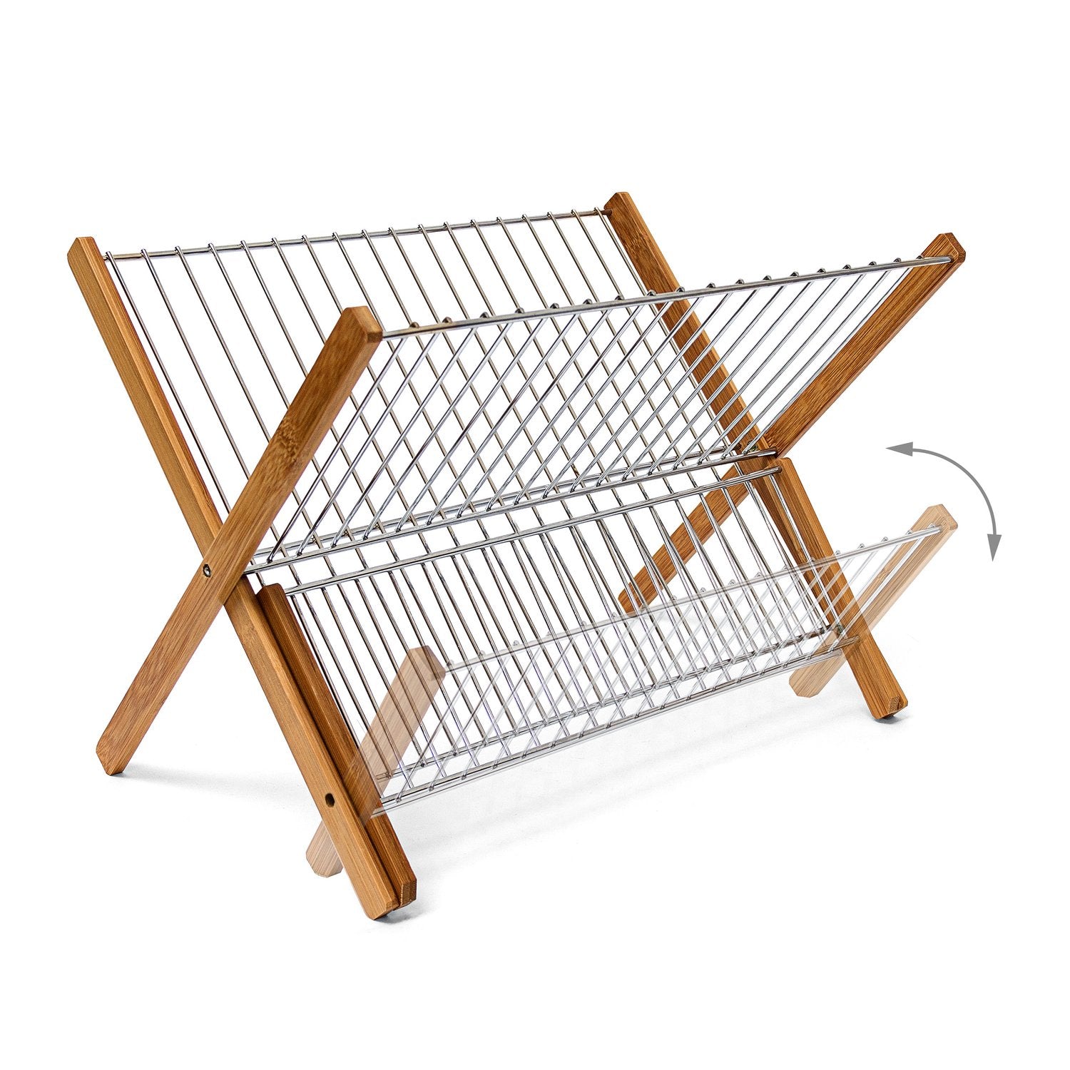 Upgrade your kitchen with this practical and stylish dish rack. Its natural water-draining design and extra storage make it a must-have for efficient dish drying. Grab yours today.