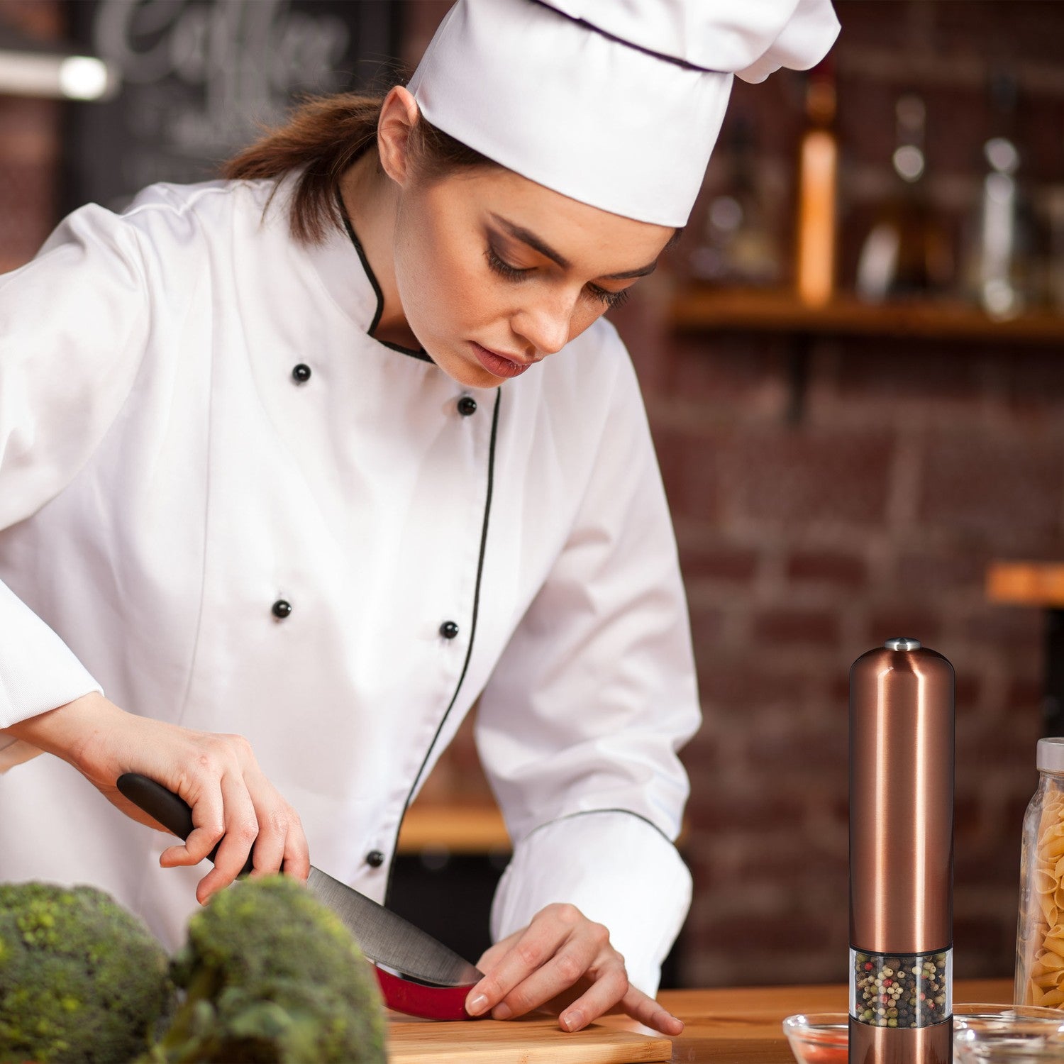 Enhance your culinary experience with the Electric Pepper Grinder, offering effortless one-hand operation for seamless spice grinding. This stainless steel grinder ensures precision and durability.