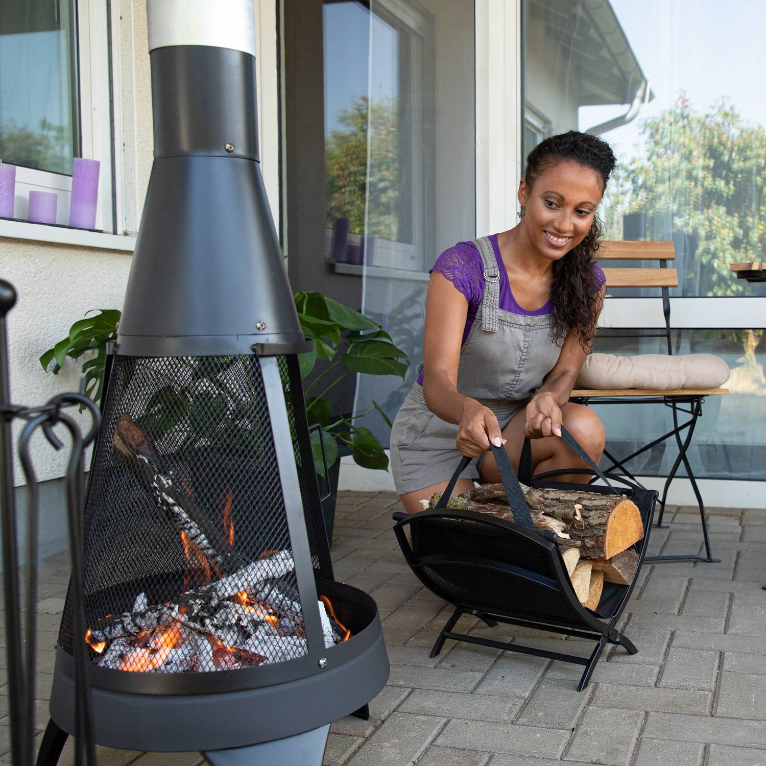 The stylish firewood basket offers optimal firewood storage and easy transport with its elegant iron design. Enhance your fireplace's rustic charm while keeping your hands clean.