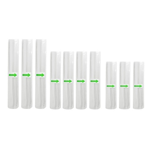 - COMPACT SIZES - thanks to its small size, the welder is easy to carry and does not take up much space. Unused The device can easily fit into a home closet or storage compartment . The set includes as many as 9 rolls of sealing foil and 5 larger food bags in the form of a tenth roll . They include various sizes and thicknesses that can be adapted to the food being packed.
