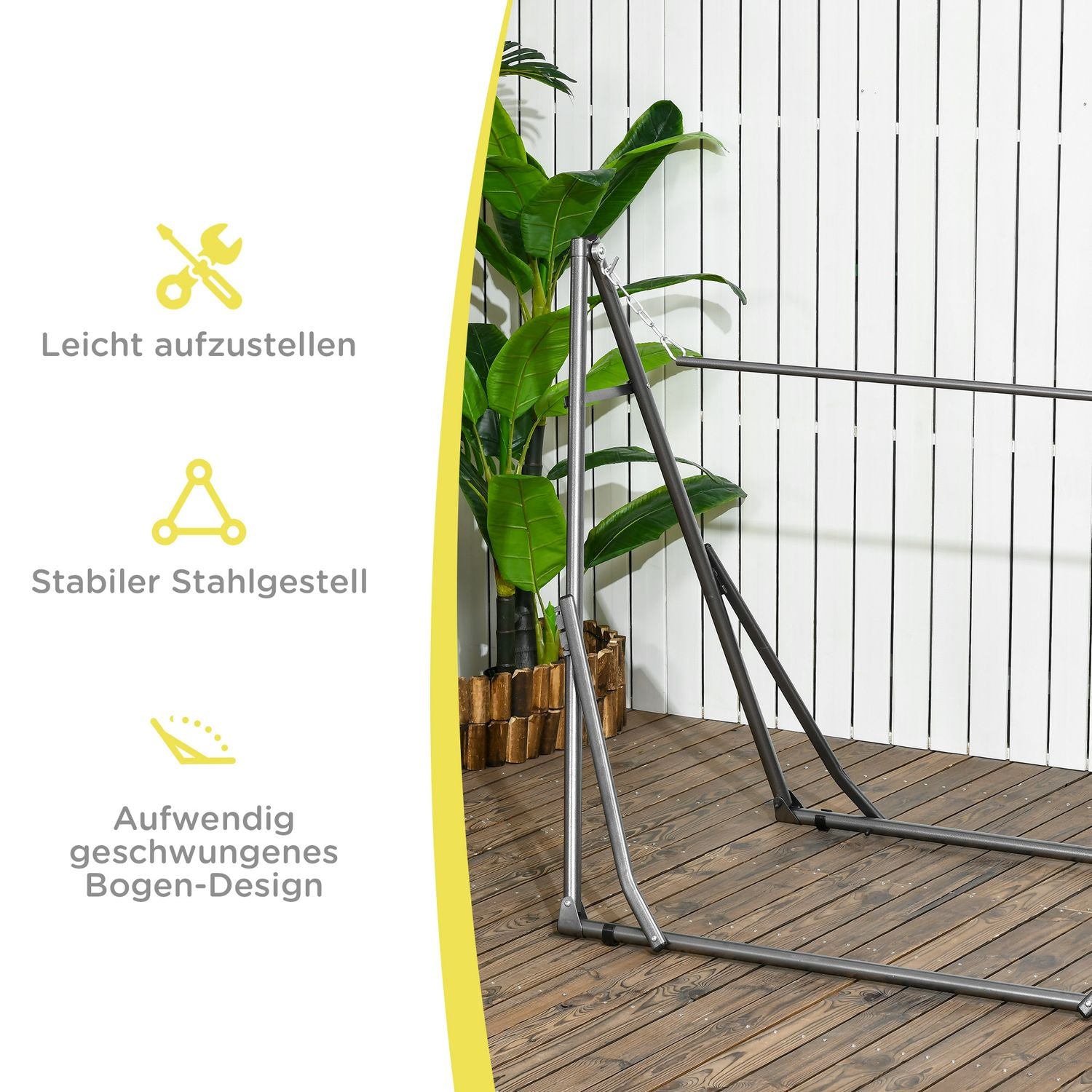 Turn any space into a haven for relaxation with our multifunctional hammock stand. This powder-coated steel rack is built for ultimate stability and durability, making it perfect for hanging your hammock virtually anywhere—no trees required. Enjoy the added innovation of its 2-in-1 design, which easily switches from a hammock stand to a practical drying rack, easily adapting to your needs.