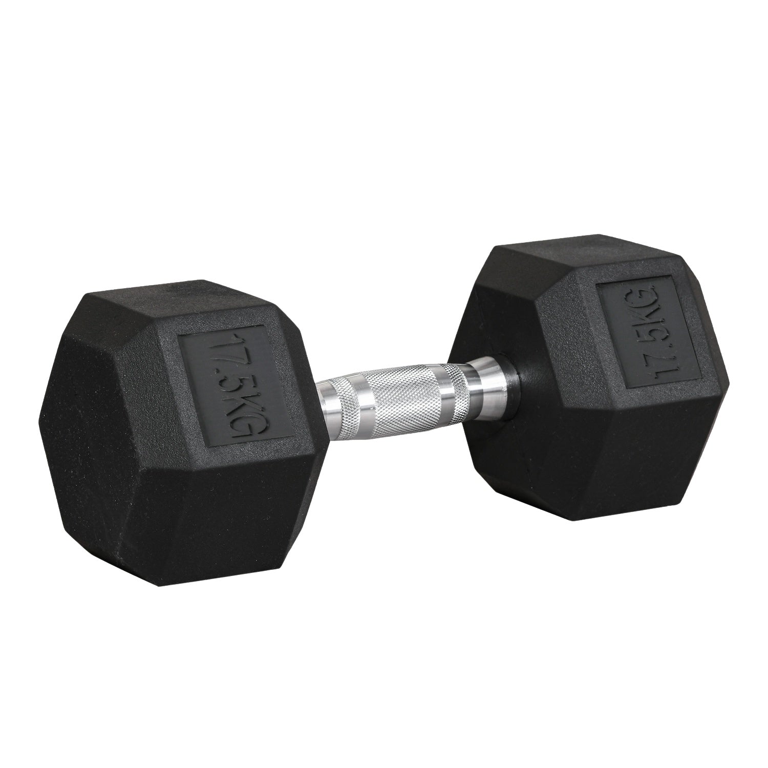 17.5 kg Hexagon rubber dumbbells, black iron for strength training