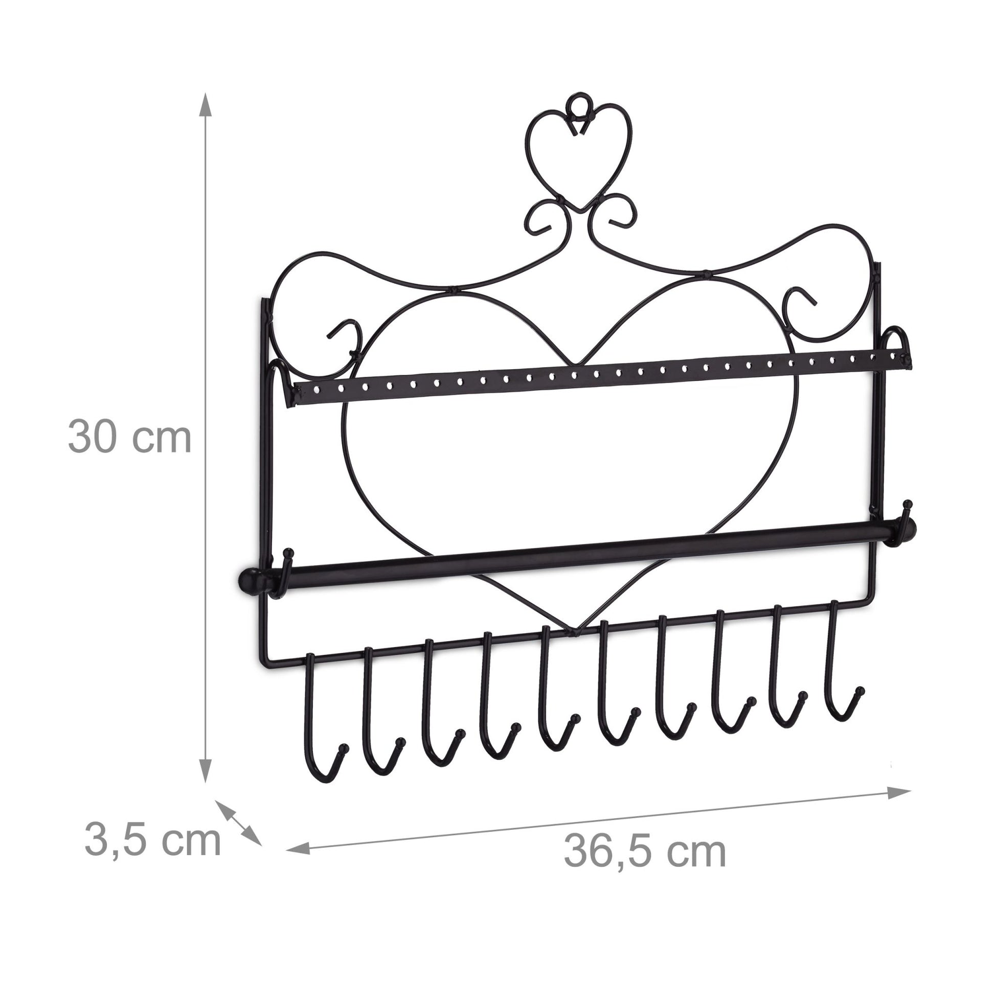 - Organize with hooks for necklaces, a bar for earrings, and a separate bar for bracelets.