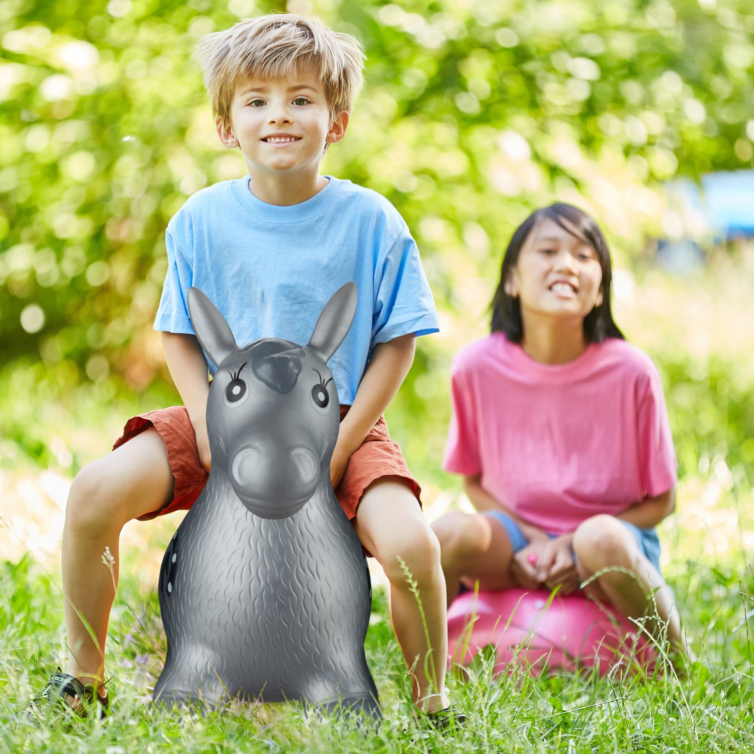 Bring joy and physical activity to your child's playtime with this engaging jumping pony. Its colorful design and included air pump make it a convenient and exciting addition to any play area. Grab yours today and watch your child bounce into fun!