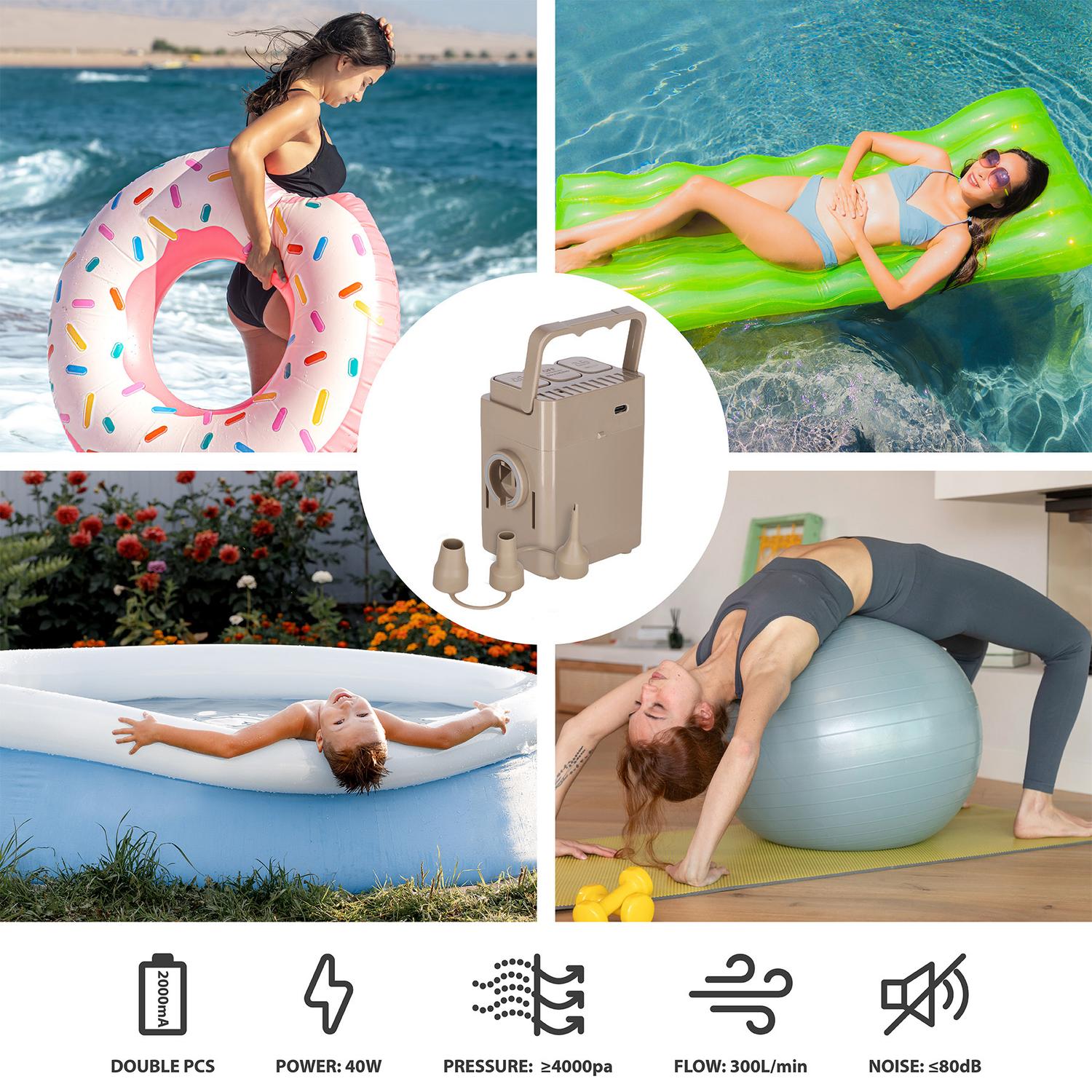 - Offers versatility with a pump that inflates various items.