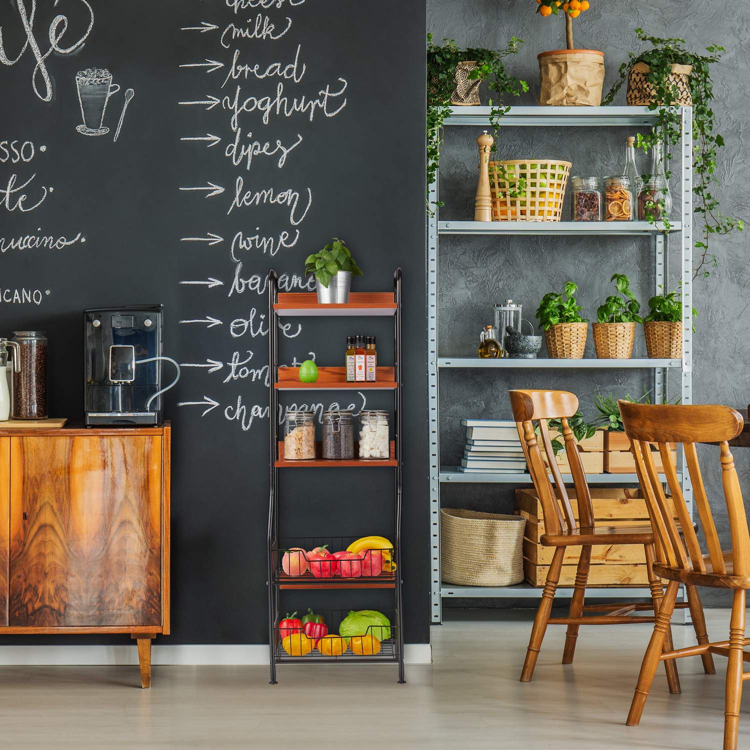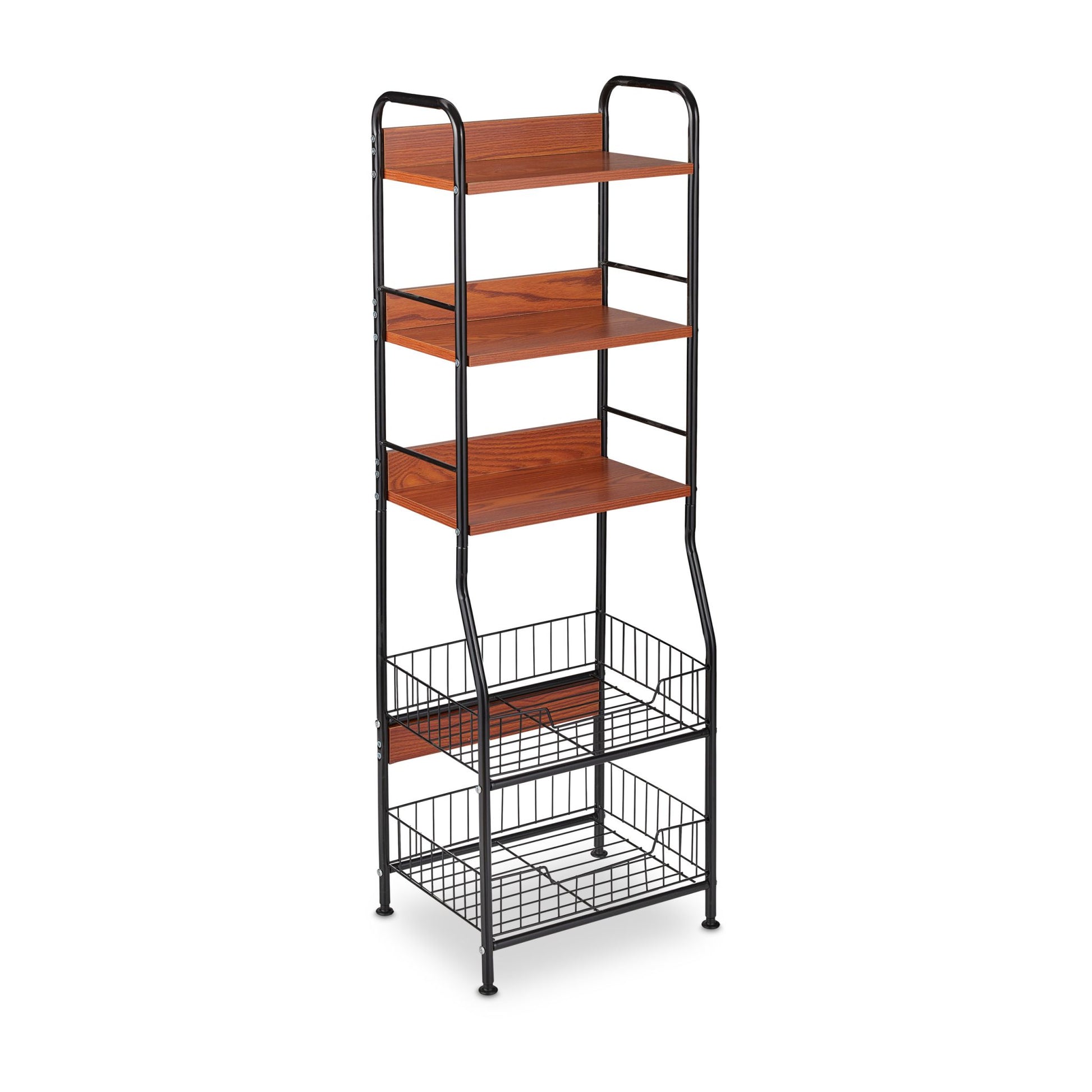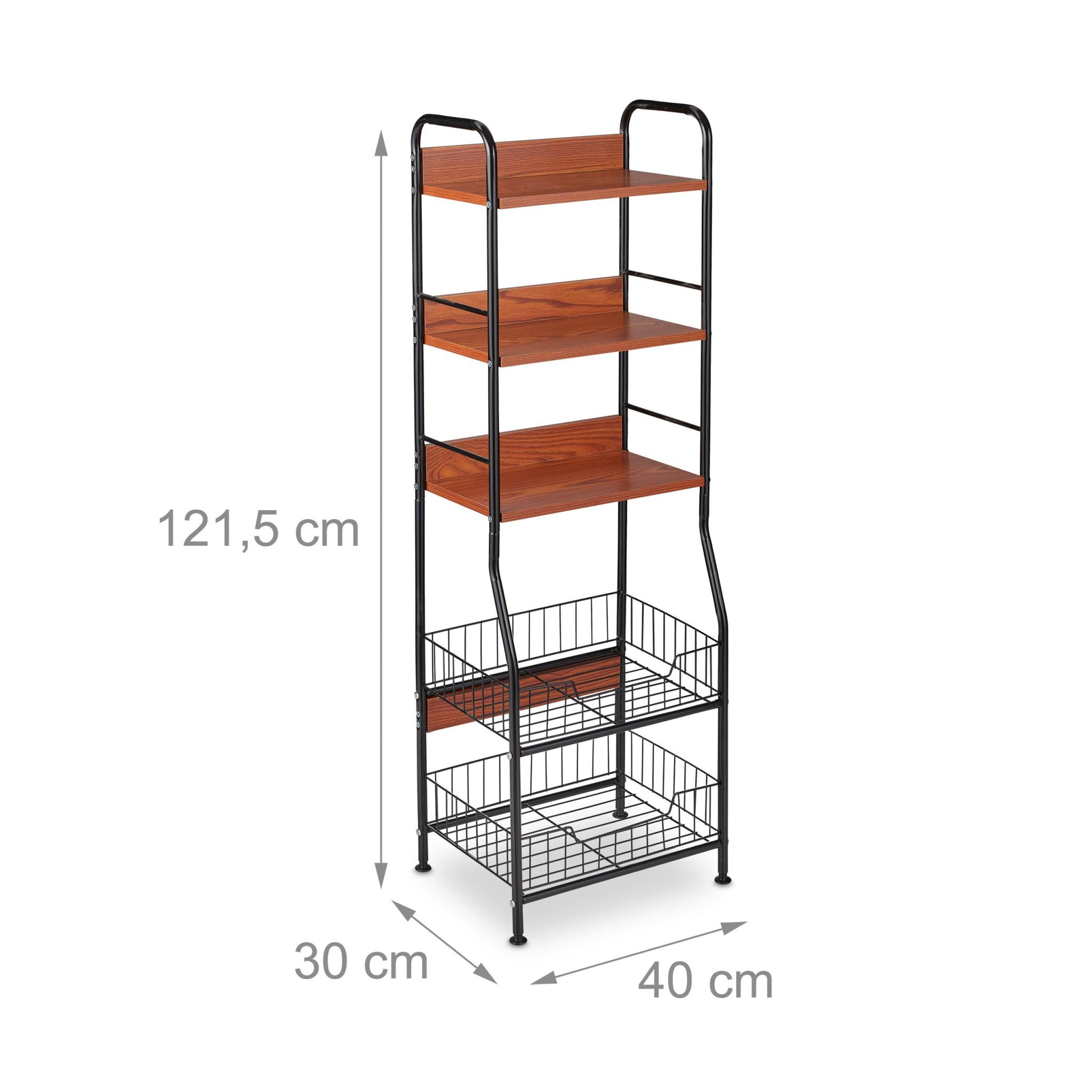 This narrow storage shelf maximizes kitchen space, offering organized storage for vegetables and utensils. Its open design ensures airflow, keeping produce fresh and accessible.